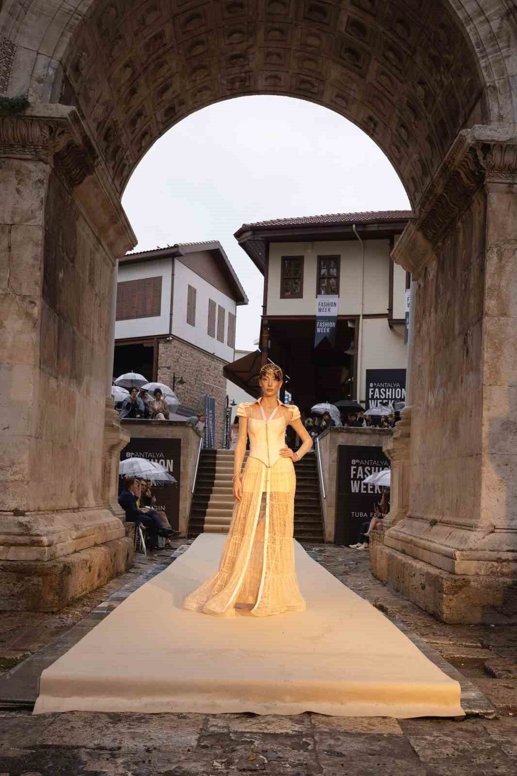 Antalya Fashion Week 2025, Antalya’nın kalbi Kaleiçi’nde, 1895 yıllık Hadrian Kapısı’nın büyüleyici atmosferinde gerçekleşen final defilesiyle sona erdi. Antik Roma’nın görkemini couture tasarımlarla buluşturan bu tarihi defile, yağmura rağmen büyük ilgi gördü.