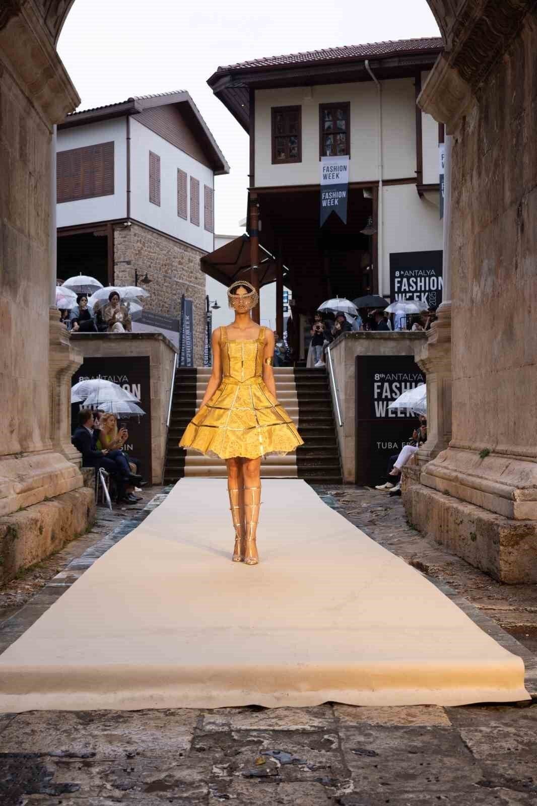 Arso Group resmi sponsorluğunda sekizincisi düzenlenen Antalya Fashion Week (AFW) kapsamında antik Roma’nın izlerini taşıyan Hadrian Kapısı’nda özel bir podyum kuruldu. Özel davetli 250 kişiyle yerli ve yabancı basın mensuplarının izlediği defilede ünlü moda tasarımcısı Tuba Ergin, couture vizyonunun en görkemli yansıması olan “Gilded Symphony” koleksiyonunu sergilendi. Konuklar, yağan yağmura rağmen gerçekleştirilen defileyi kendilerine dağıtılan şemsiyelerin altında izlediler. Halka açık kısımda ise yüzlerce Antalyalı defileyi takip etti.