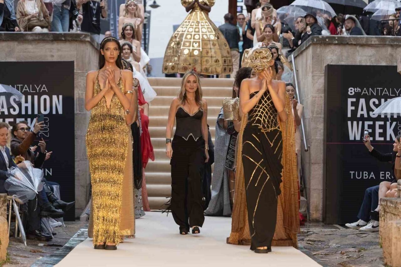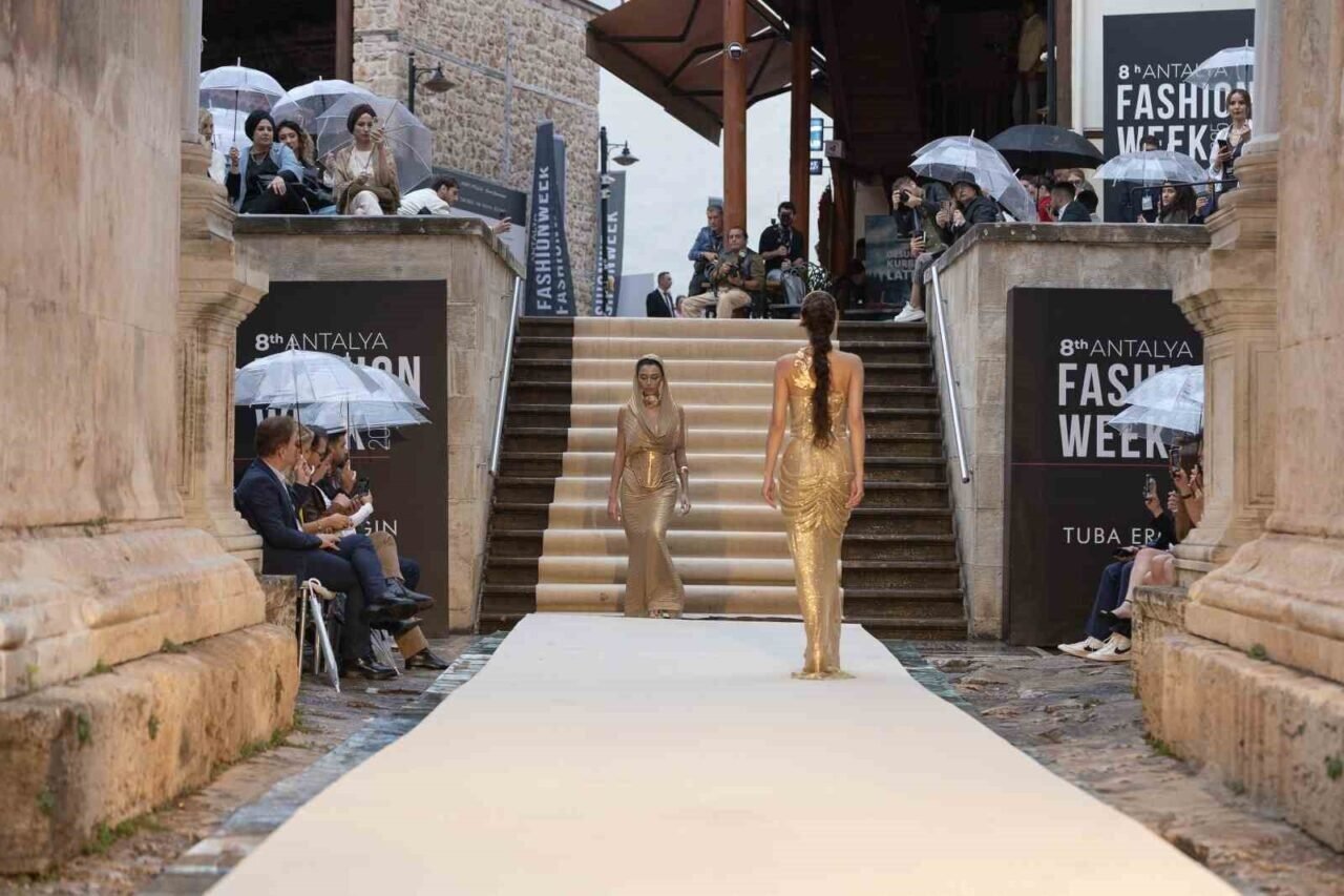 Antalya Fashion Week 2025, Antalya’nın kalbi Kaleiçi’nde, 1895 yıllık Hadrian Kapısı’nın büyüleyici atmosferinde gerçekleşen final defilesiyle sona erdi. Antik Roma’nın görkemini couture tasarımlarla buluşturan bu tarihi defile, yağmura rağmen büyük ilgi gördü.