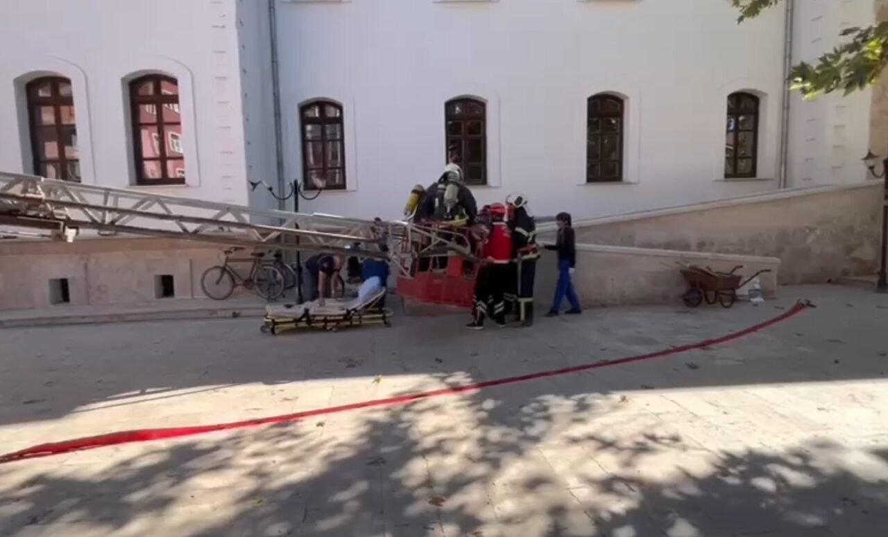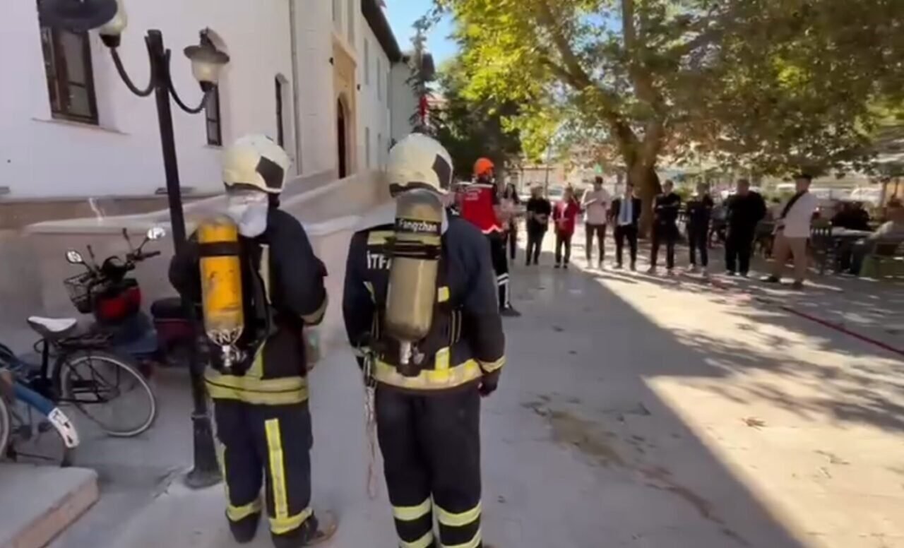 Tarihi hükümet konağında gerçeği aratmayan yangın tatbikatı