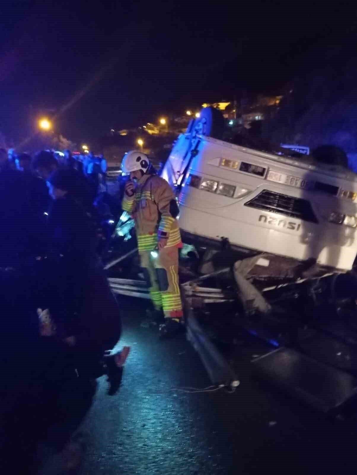 SÜRÜCÜSÜNÜN DİREKSİYON HAKİMİYETİNİ KAYBETTİĞİ SERVİS MİDİBÜSÜ TAKLA ATARAK TERS DÖNDÜ. KAZADA TAVAN KISMI HURDAYA DÖNEN ARAÇTAKİ 26 TARIM İŞÇİSİNDEN 25’İ YARALANDI.