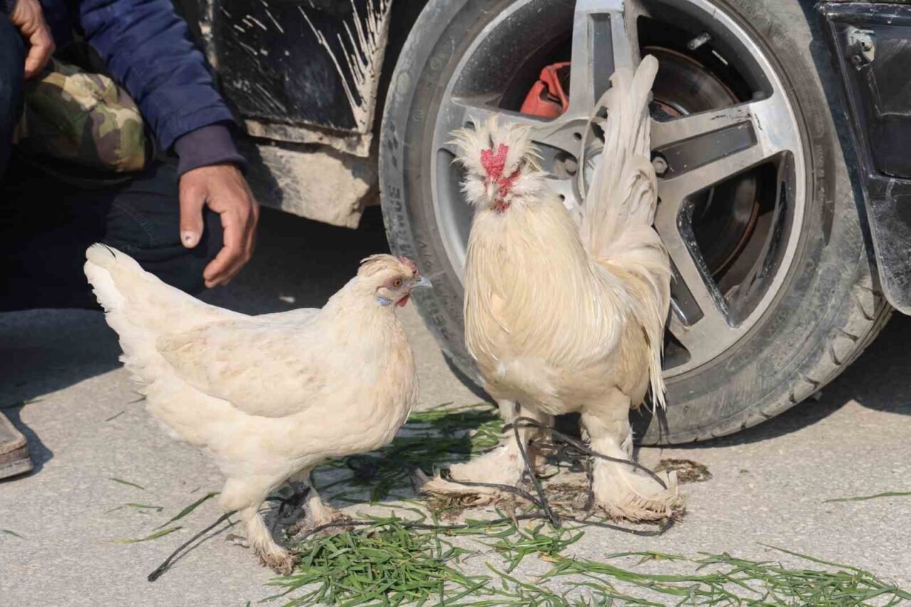 Hatay’da aracını satmak için araba pazarına getiren Mehmet Kuyucu, hobi olarak beslediği tavuğu ve horozunu da aracın tekerine bağlayarak aracıyla birlikte satışa çıkardı. Aracın tekerine bağlı hayvanlar görenlerin dikkatini çekerken Kuyucu, tavuk ile horoza 3 bin TL arabaya ise 260 bin TL’den müşteri bekledi. Hatay’ın Antakya ilçesinde yaşayan Mehmet Kuyucu, 1996 model otomobilini satmak için […]