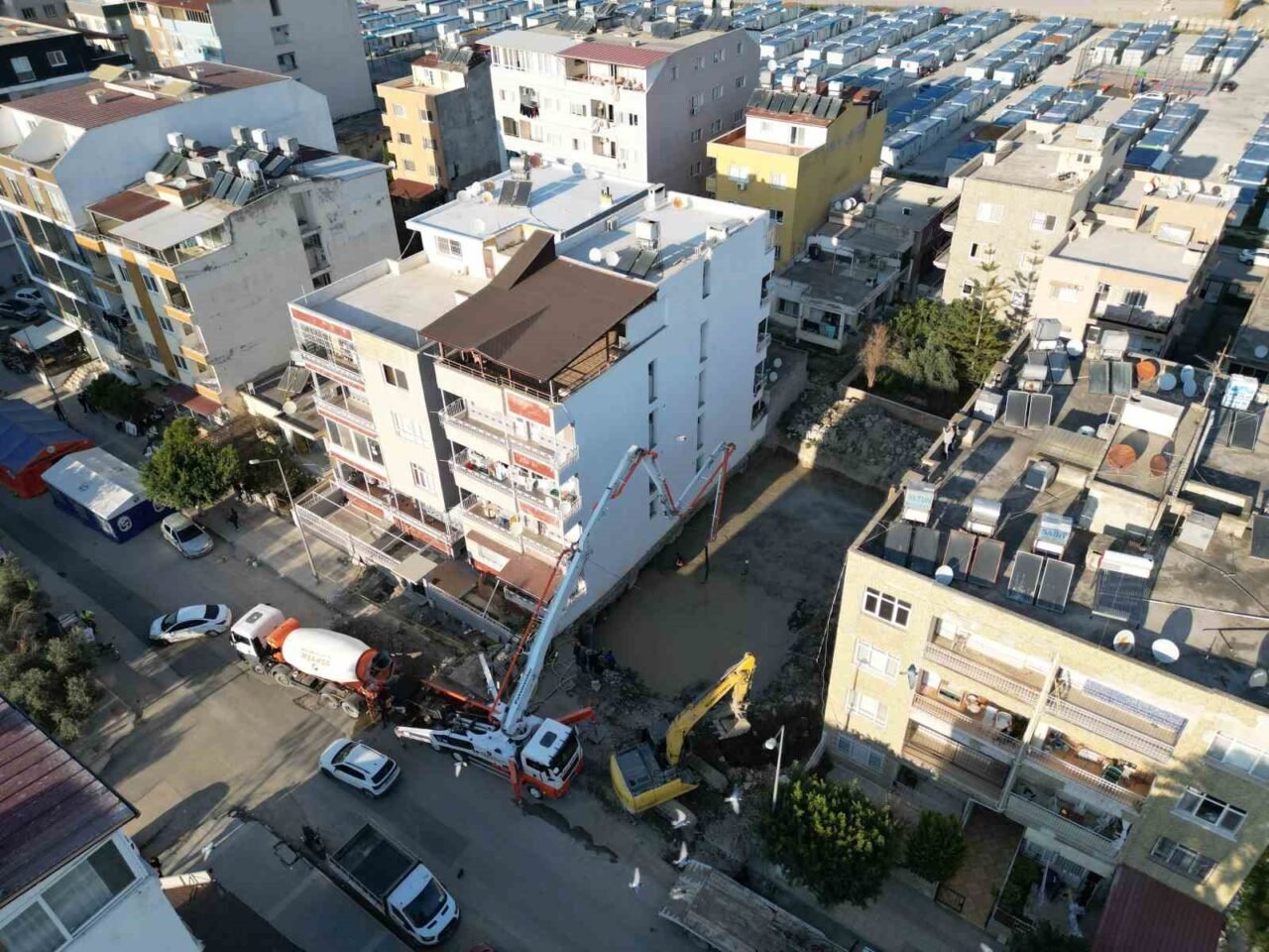 HATAY’DA YAPILAN BİNA TEMELİ KAZI ÇALIŞMASINDA YANDAKİ 5 KATLI BİNANIN TEMELİNDE GÖÇÜK MEYDANA GELDİ.