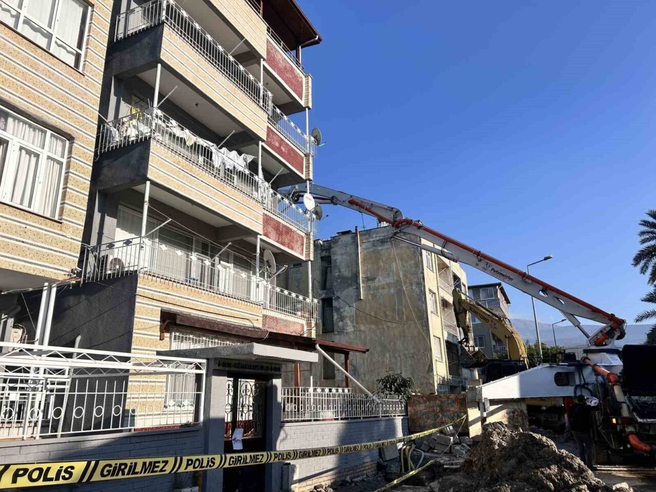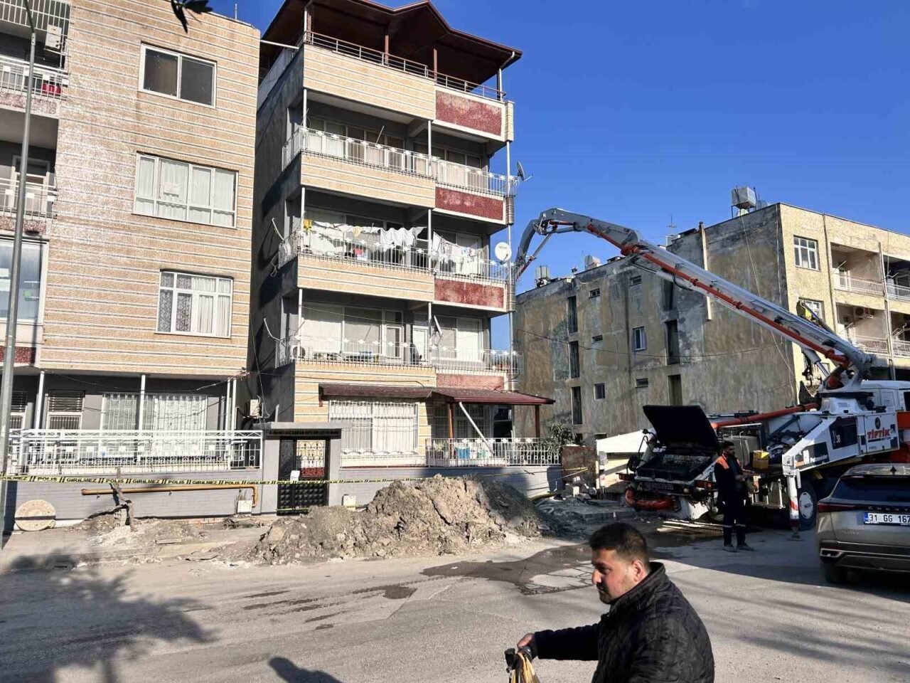 HATAY (İHA) – Hatay’da temel kazısı esnasında yanda bulunan 5 katlı binanın temelinde göçük meydana geldi. Göçük sonrası 5 katlı bina ekipler tarafından boşaltıldı.
