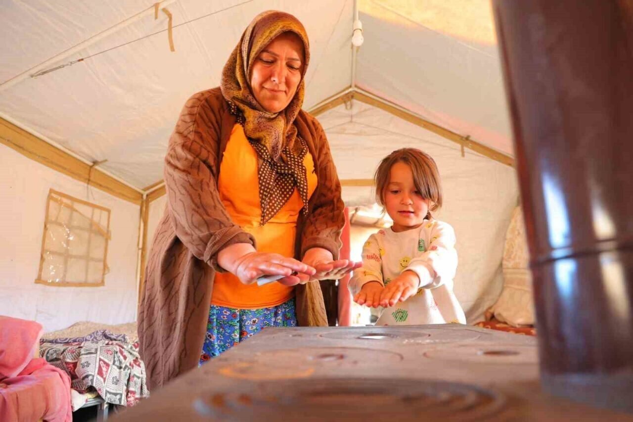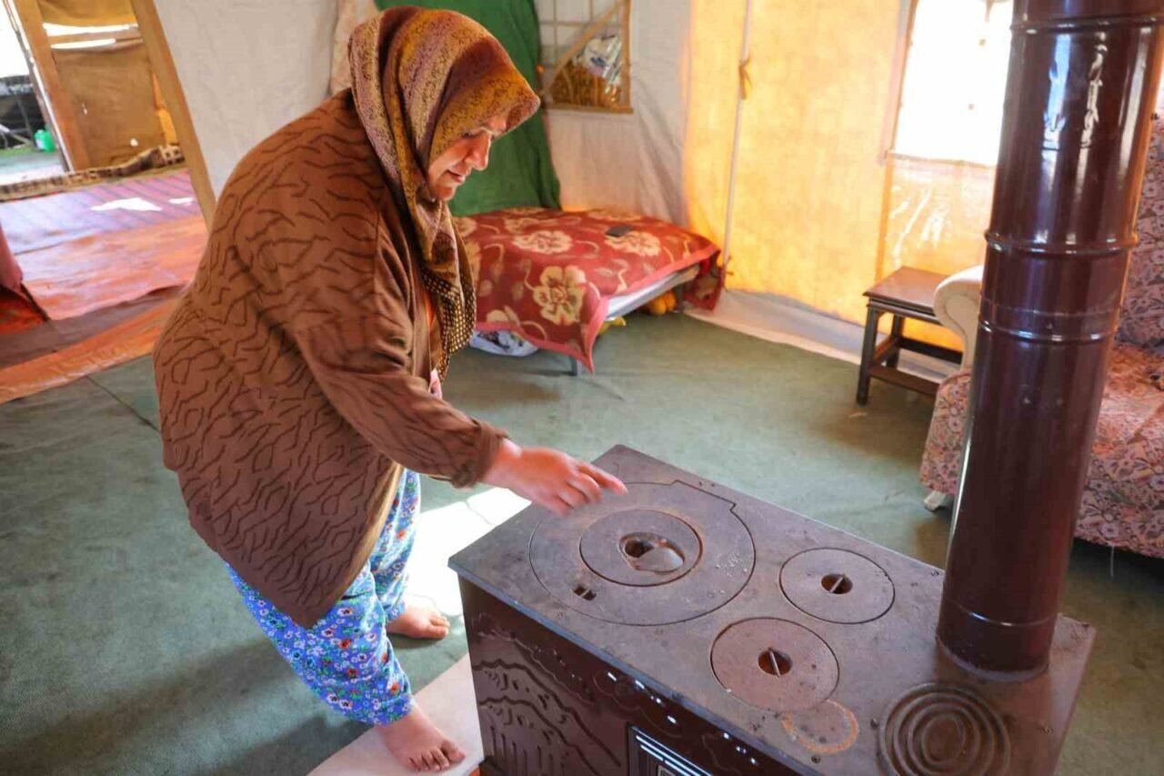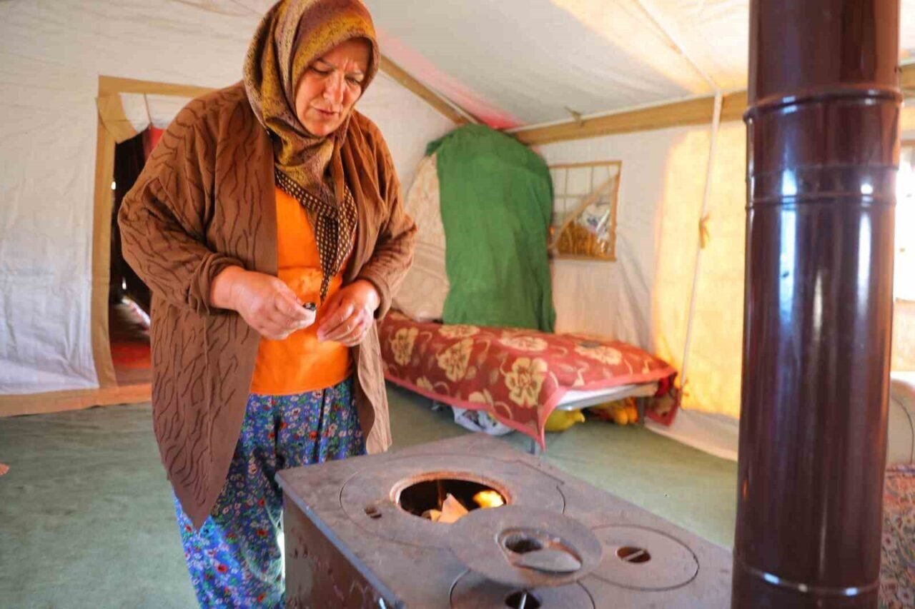 Yayla havasının etkili olduğu Ahır Dağı’nda, gün içerisinde 30 dereceyi aşan sıcaklıklar geceleri 10 derecenin altına düşebiliyor. Bu nedenle çadırda yaşayan aile, bazı günler öğle sıcağında gölge ararken, gece ise soba başında ısınıyor.