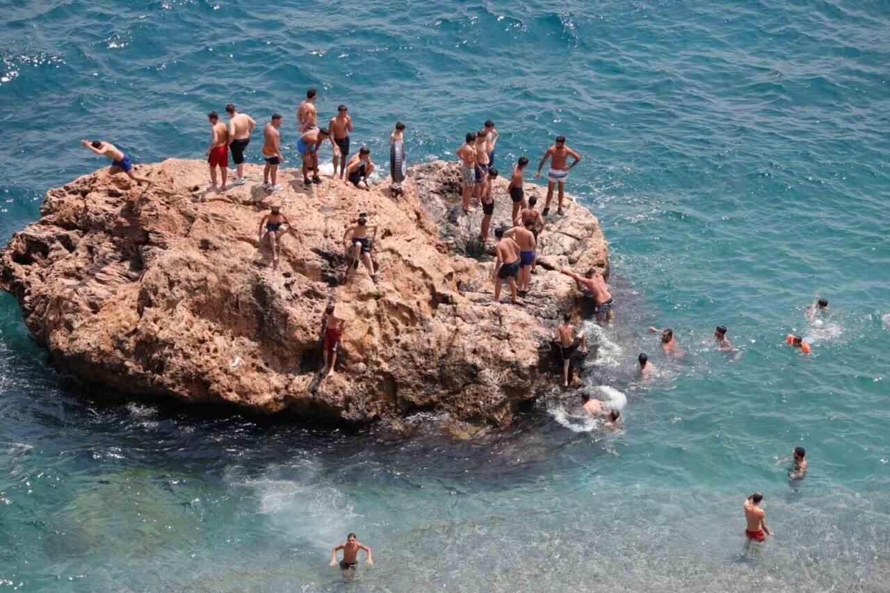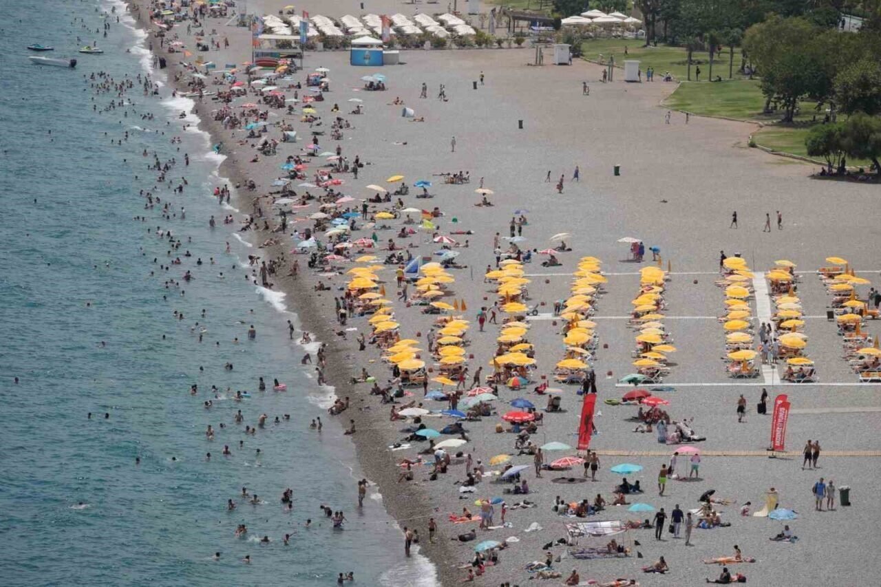 Antalya’ya termometreler 33 dereceyi gösterirken ÖSYM tarafından düzenlenen YKS’nin ikinci oturumunun ardından Antalyalılar, soluğu dünyaca ünlü Konyaaltı Sahili’nde aldı.