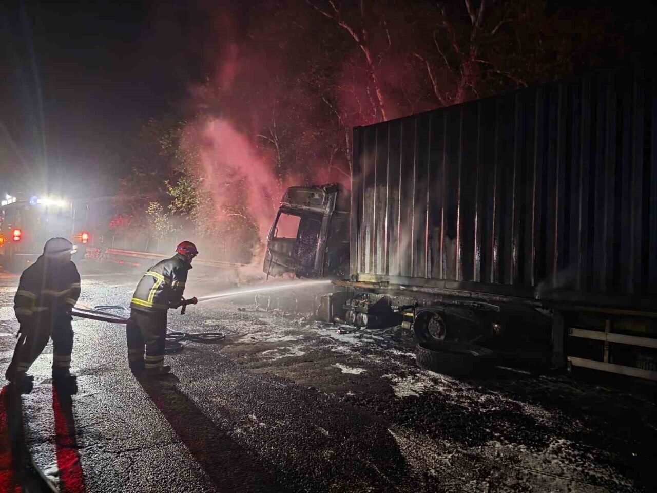 Yangın, Pozantı-Adana Otoyolu’nda Pozantı ilçesi Güney gişeleri yakınında meydana geldi. Henüz plakası ve sürücüsünün ismi öğrenilemeyen tırda yangın çıktı. İhbar üzerine olay yerine itfaiye ve orman işletmesine bağlı arazözler sevk edildi. Yangın aracı kullanılamaz hale getirirken, alevler otoyol kenarındaki ormanlık alana sıçradı. Yangın nedeniyle Pozantı-Adana Otoyolu Ankara istikameti ulaşıma kapatıldı. Ekiplerin müdahalesiyle yangın söndürülürken, otoyol kontrollü olarak yeniden ulaşıma açıldı.