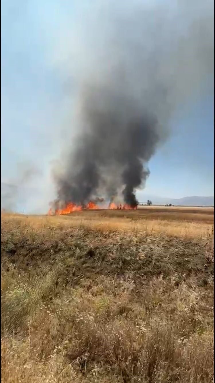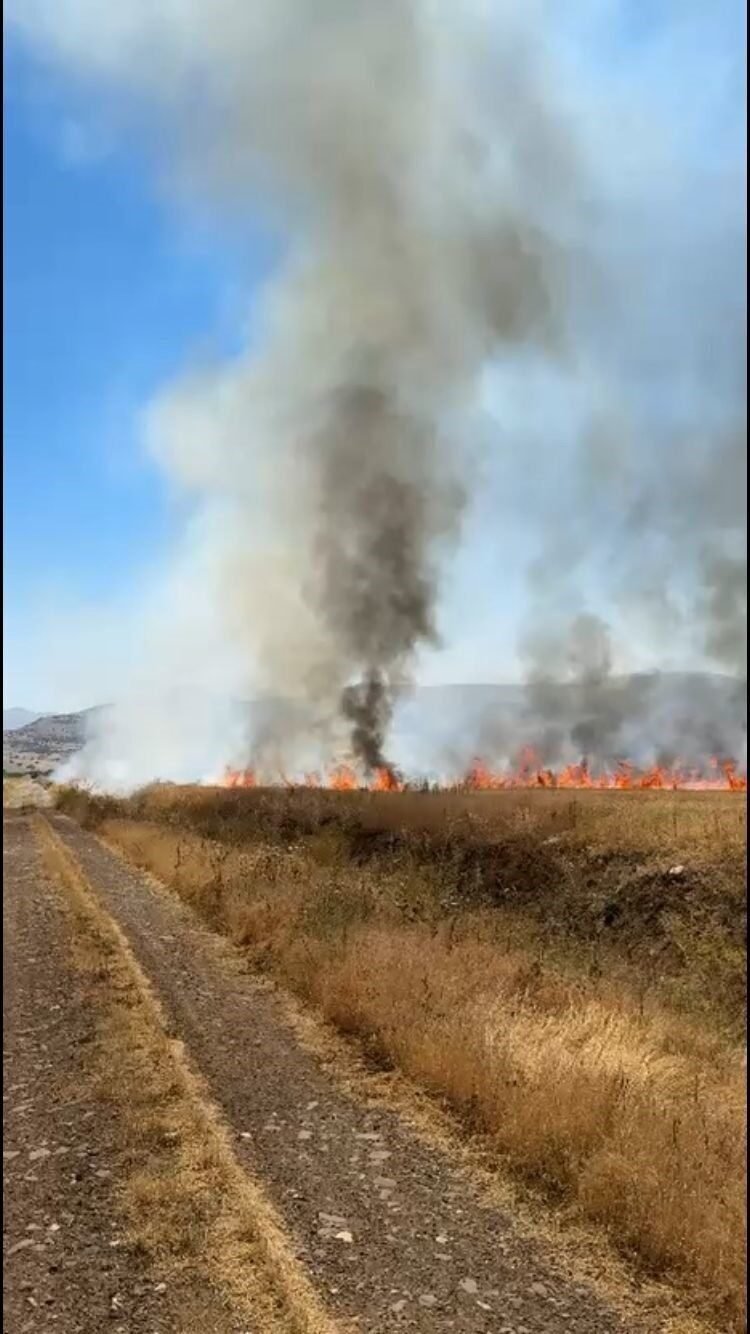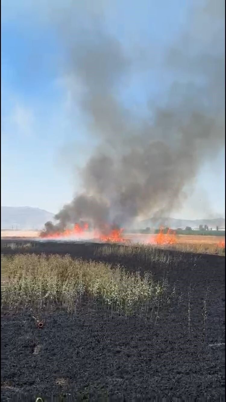 Burdur’un Karamanlı ilçesinde traktör kepçesinin elektrik tellerine temas etmesi sonucu kopan kablo, saman yüklü römorkta yangına yol açtı. Yangın kısa sürede çevredeki ekili alanlara sıçrayarak, yaklaşık 50 dönüm arazinin zarar görmesine neden oldu.