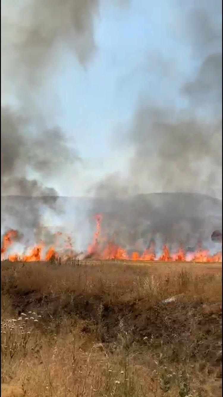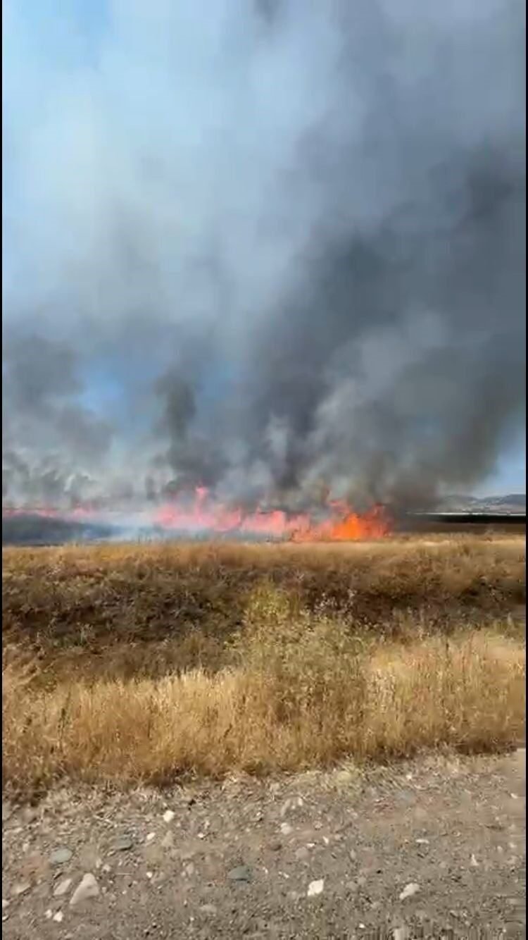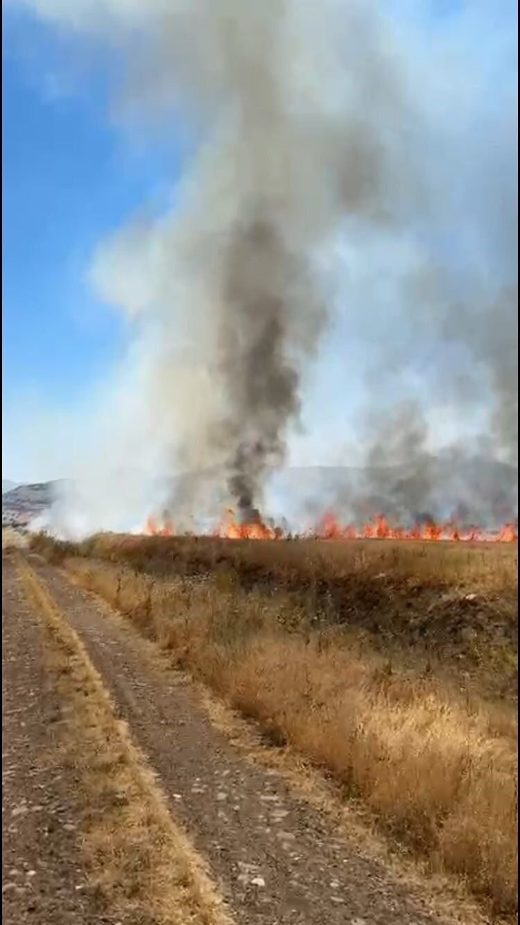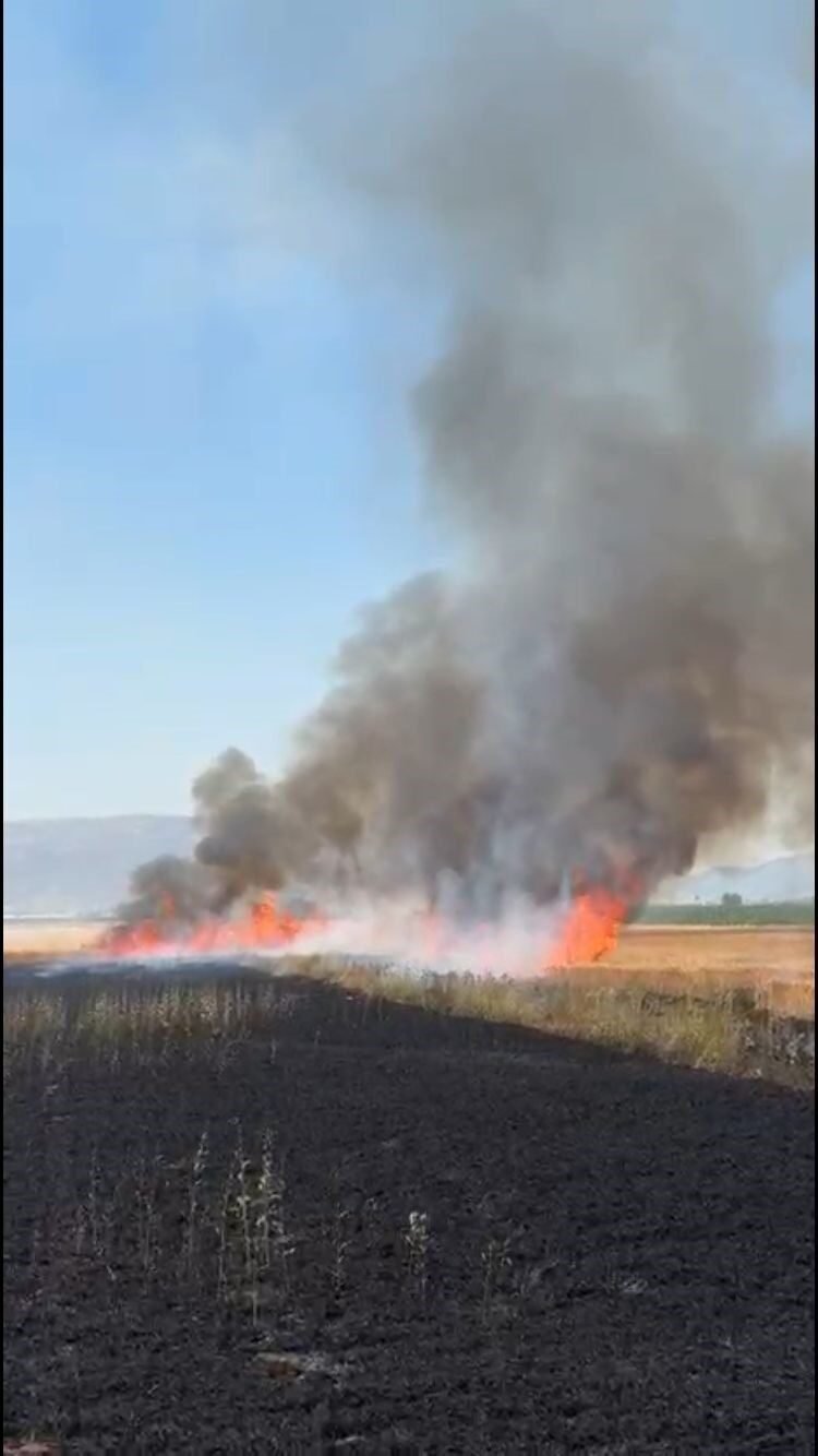 Burdur’un Karamanlı ilçesinde traktör kepçesinin elektrik tellerine temas etmesi sonucu kopan kablo, saman yüklü römorkta yangına yol açtı. Yangın kısa sürede çevredeki ekili alanlara sıçrayarak, yaklaşık 50 dönüm arazinin zarar görmesine neden oldu.