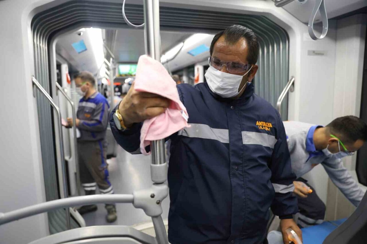 Antalya Büyükşehir Belediyesi, Antalyalılara daha iyi hizmet sunma hedefi doğrultusunda, tramvaylarda temizlik ve hijyen çalışmalarını titizlikle sürdürüyor.