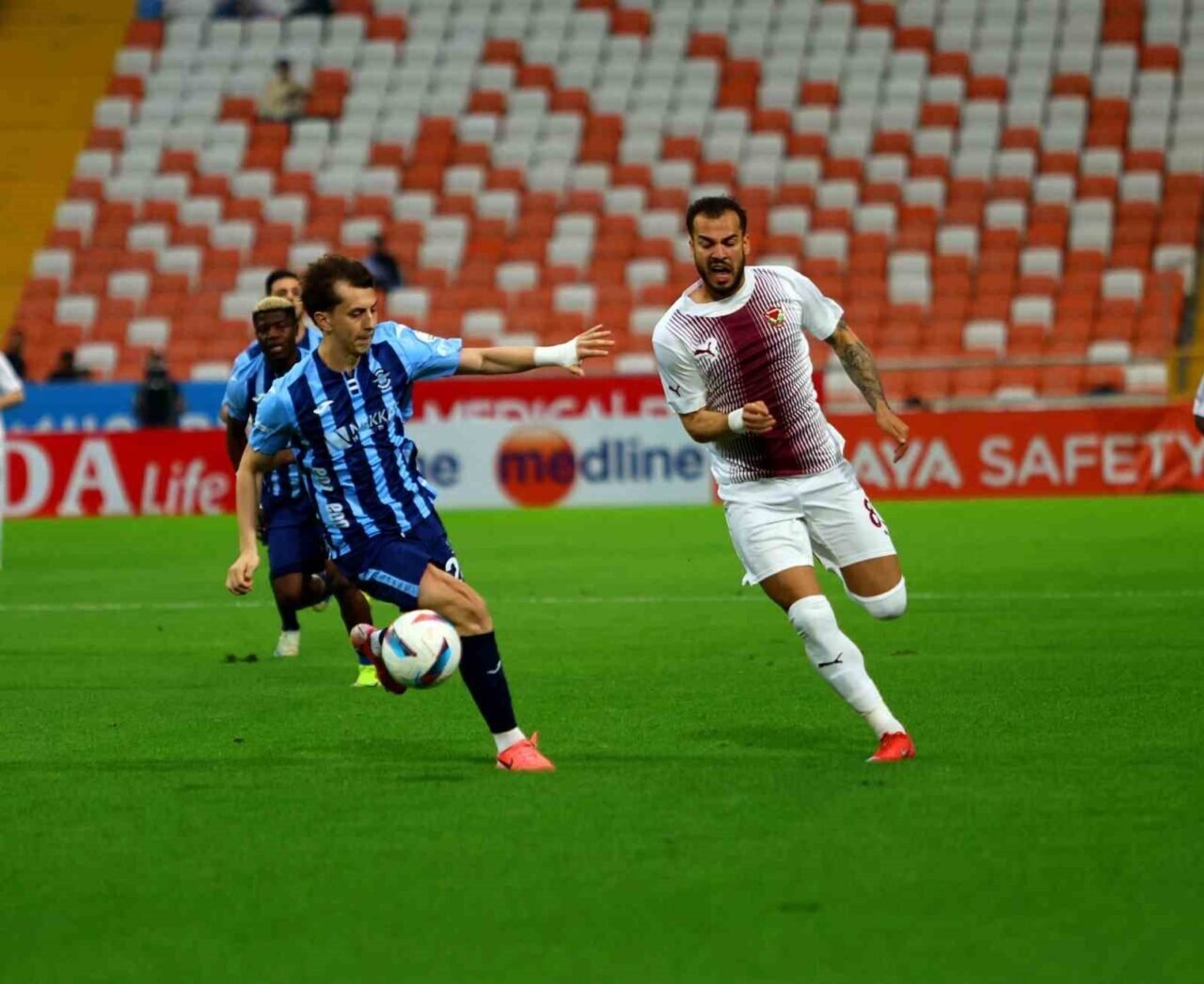 TRENDYOL SÜPER LİG’İN 36.HAFTASINDA ADANA DEMİRSPOR, EVİNDE ATAKAŞ HATAYSPOR İLE KARŞILAŞIYOR. MÜSABAKANIN İLK YARISI 3-0 KONUK EKİBİN ÜSTÜNLÜĞÜYLE GEÇİLDİ.
