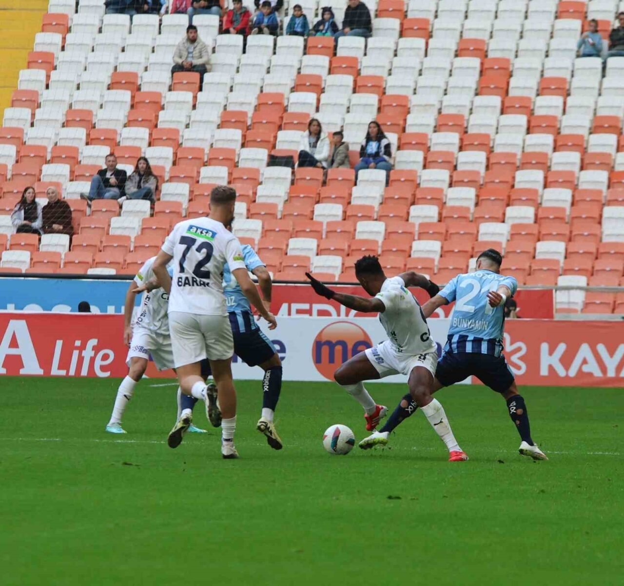 6. dakikada Adana Demirspor’un sağ kanattan kullandığı köşe vuruşunda savunmanın sektirdiği top Alioui’nin önünde kaldı. Alioui’nin şutu üstten dışarı çıktı.