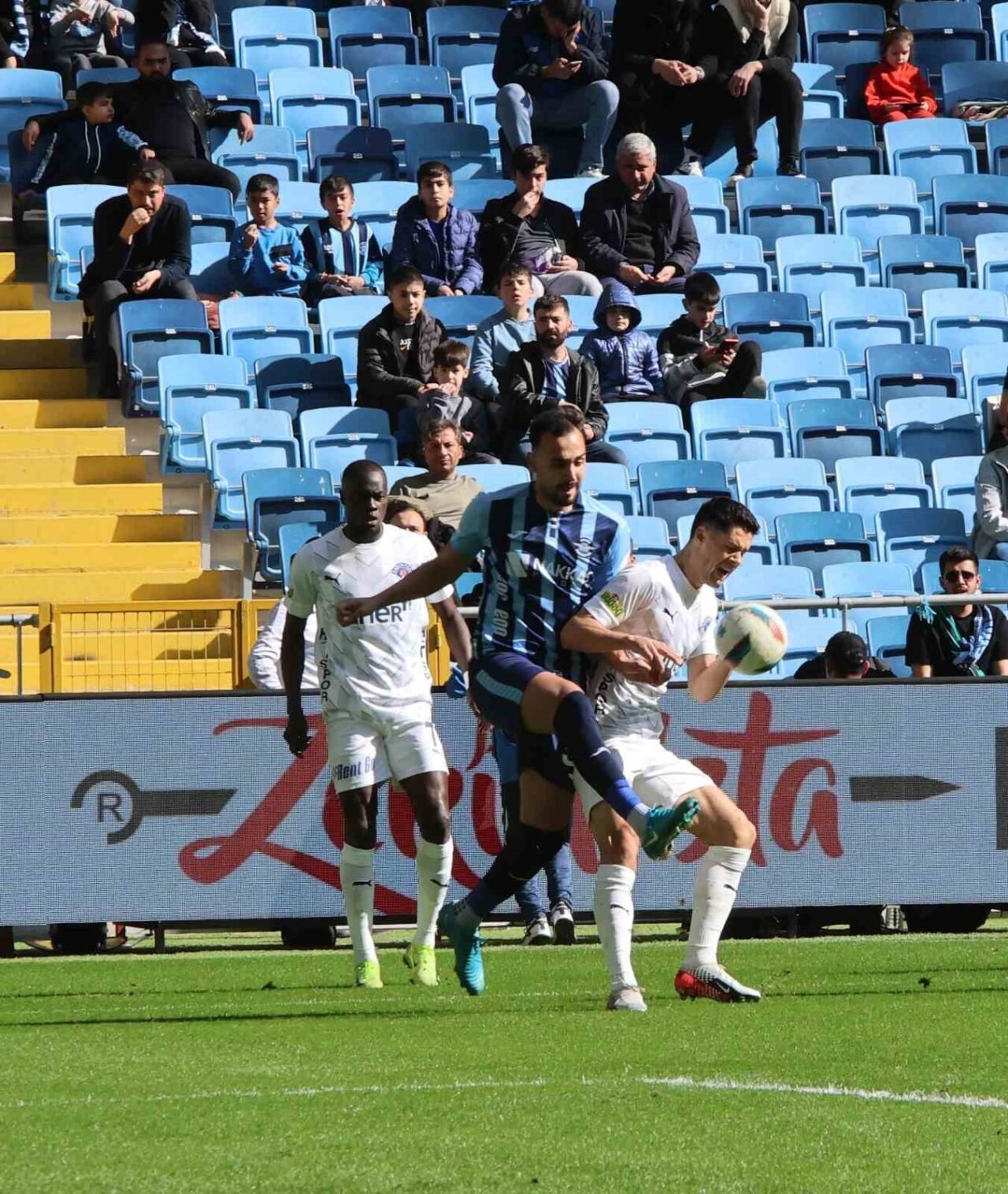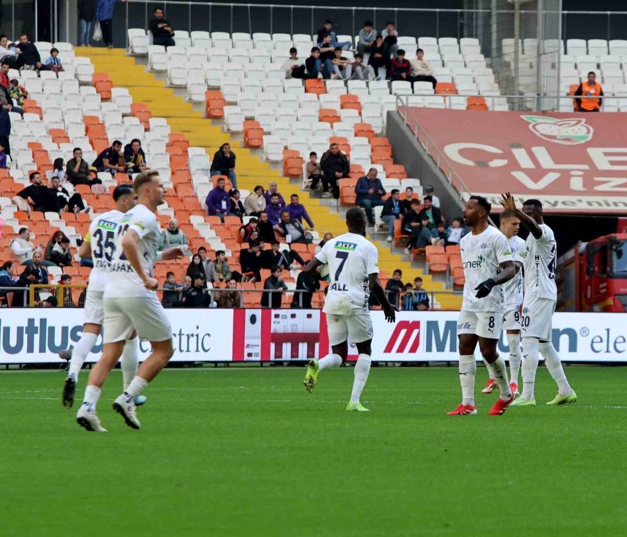 13. dakikada Adana Demirspor’un sol kanattan paslaşarak kullandığı serbest vuruşta Aliou topu ceza sahasına ortaladı. Penaltı noktası civarında yükselen Tolga Kalender’in kafa vuruşunda meşin yuvarlak ağlarla buluştu. 1-0