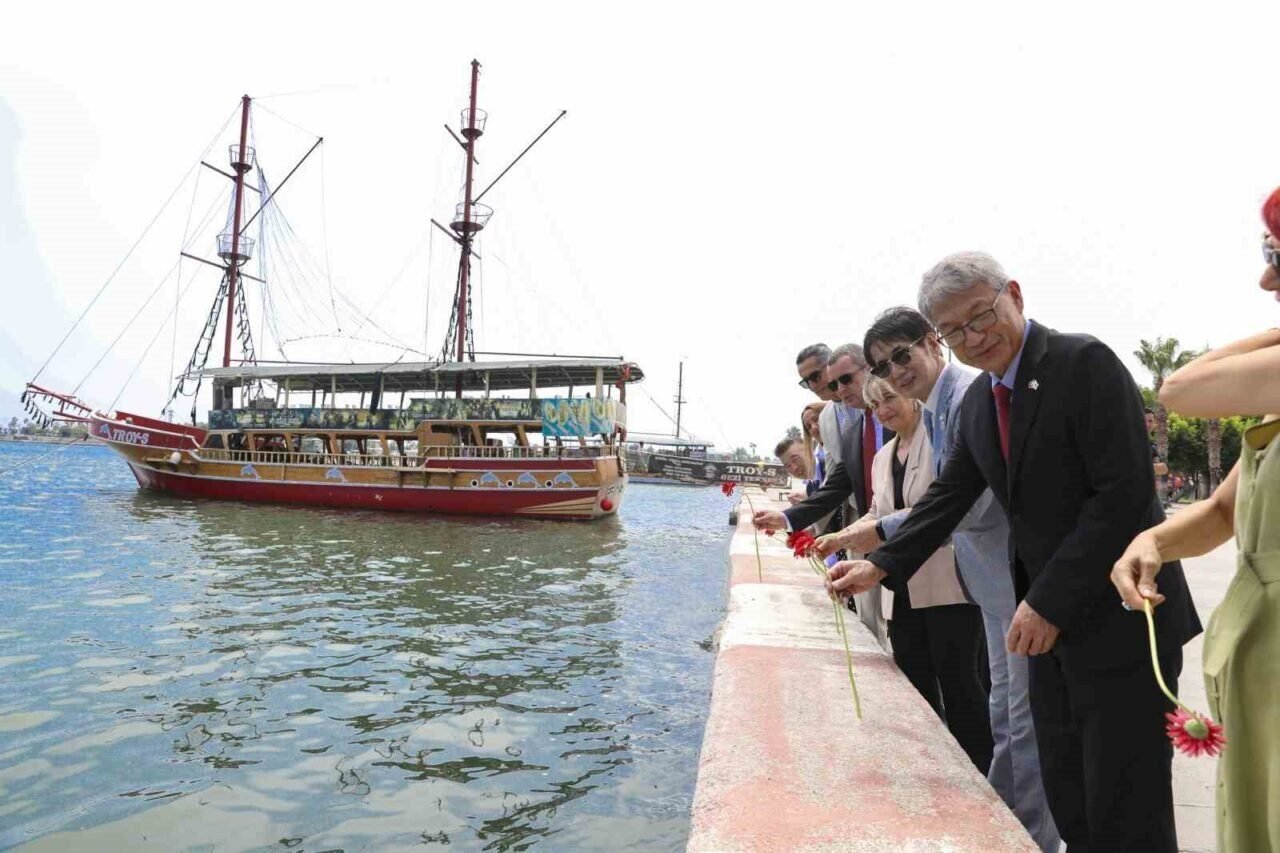 Öte yandan heyetin Başkan Seçer’i ziyareti öncesinde Refah Şehitleri Anıtında bir tören gerçekleştirildi. Ertuğrul Fırkateyni Faciasında hayatını kaybeden denizcilerin anıldığı törende, Türk-Japon dostluğu bir kez daha vurgulandı. Törene; Mersin Büyükşehir Belediye Başkanı Vahap Seçer’i temsilen Genel Sekreter Yardımcısı Ali Rıza Özdemir’in yanı sıra, Mersin Valisi Atilla Toros’u temsilen Mersin İl Kültür ve Turizm Müdür Yardımcısı Emel Gökbel, Wakayama Eyalet Valisi Izumi Miyakazi, Kushimoto Belediye Başkanı Katsumasa Tashima, Wakayama Eyalet Meclis Üyesi Takeji Sato ile beraberindeki heyet katıldı. Tören, Ertuğrul Fırkateyni Faciasında hayatını kaybedenler anısına denize karanfil bırakılması ile son buldu.