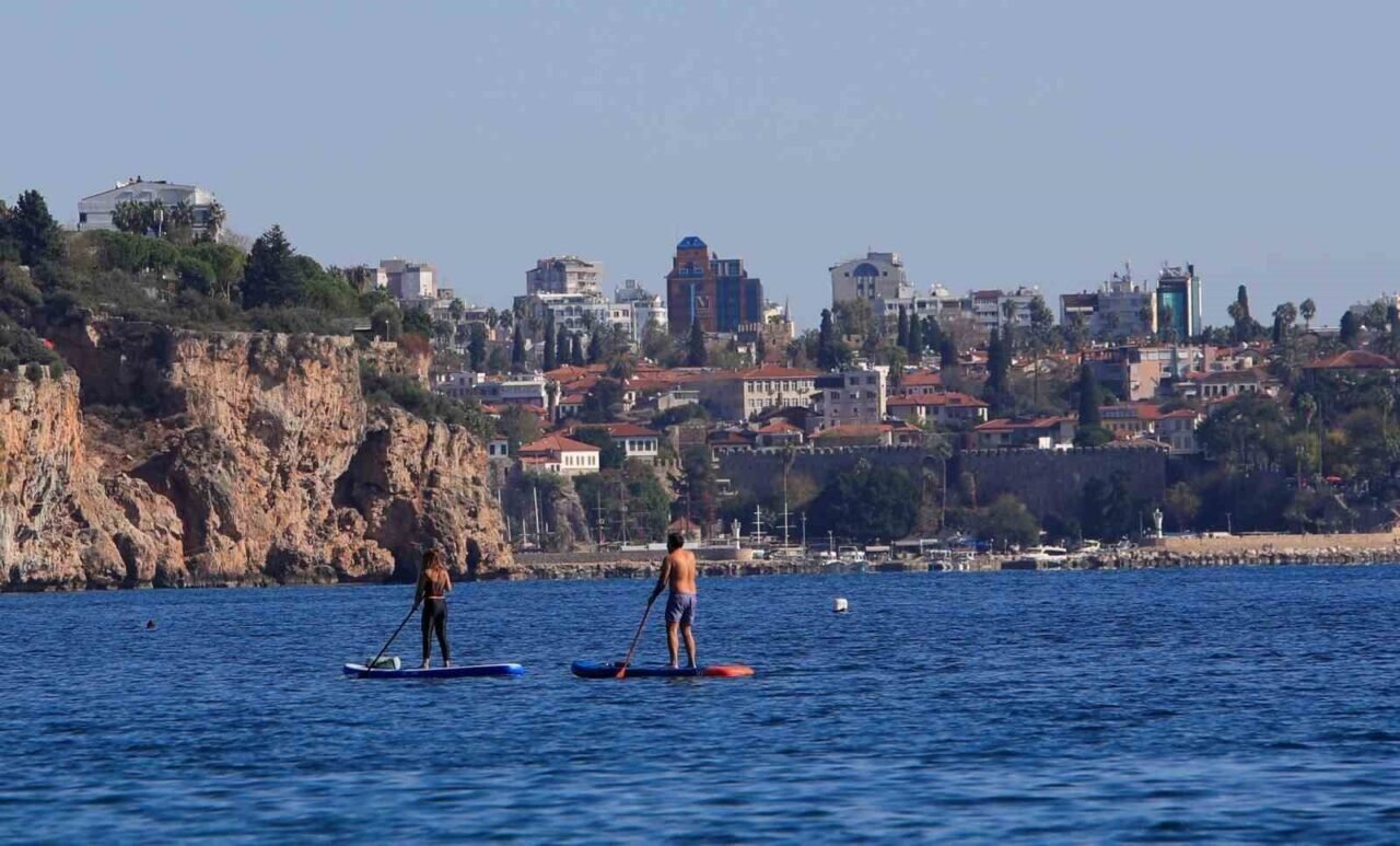 Türkiye’nin özellikle doğu illeri sert kış şartları altında karla mücadele ederken turizmin başkenti Antalya’da yazdan kalma günler yaşanıyor. Meteoroloji verilerine göre kentte hava sıcaklığı 22, deniz suyu sıcaklığı ise 22.5 derece olarak ölçüldü. Sıcak ve güneşli havayı fırsat bilen kent sakinleri ve yabancı turistler Konyaaltı Sahili’ni doldururken kasım ayında denize girmenin keyfini çıkardı. Bazı vatandaşlar ise beraberinde getirdikleri kamp masaları ile sahilde piknik yaparken, kimileri ise balık tutmayı ve yürüyüş yapmayı tercih etti.
