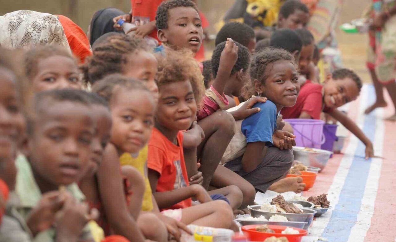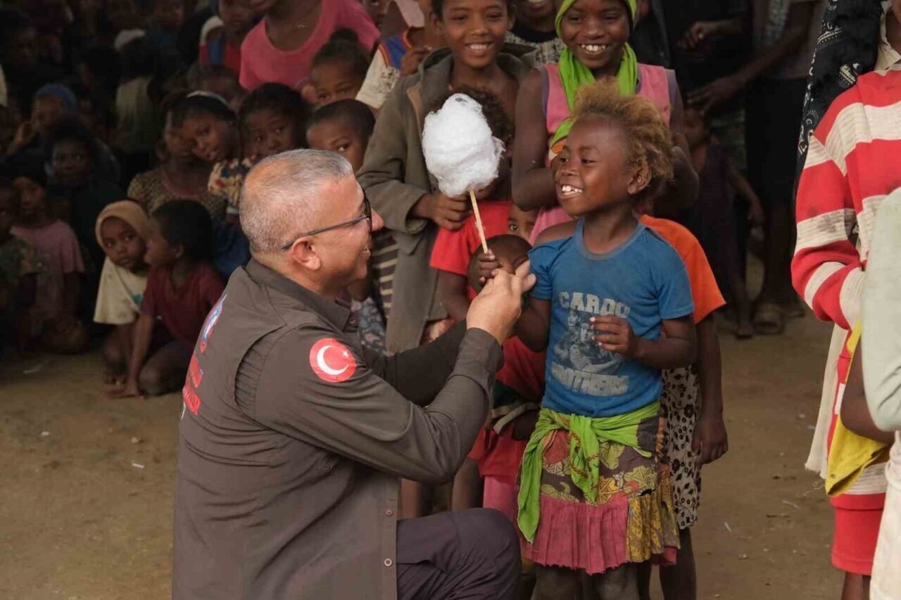 Dernek, Madagaskar’da kurulan 8 büyük dağıtım merkezinde her gün ortalama 7 bin kişiye yemek dağıtımı yaptı. 2024 yılı boyunca tam 2 milyon 555 bin kişiye ulaşıldı. Sofralara yalnızca pirinç değil; ekmek, et, makarna ve tatlı da taşındı. Bir yıl da 2 milyon 190 bin ekmek, 255 bin kilogram pişmiş pirinç, 54 bin porsiyon makarna dağıtıldı. Çocukların en sevdikleri şeker ve çikolatalar ise 2,7 milyon adet ikram edildi.