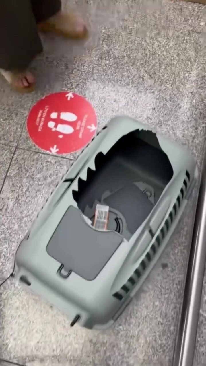 Görüntülerde 8 kilogramı geçmeyen havanların kafesi kırmasının imkansız olduğunu belirten genç kadın, “Acilen gelmeniz gerekiyor diye anons edilince şaşırdım. Rahat etmeleri için en büyük kafesi aldım. 8 kilogramı geçmeyen hayvanlar bunlar, birini kaybediyorlar. Kafesini açtığını iddia ediyorlar. Diğerini de bir şey atmışlar üzerine, o hayvanın boyu yetişmiyor oraya, o kadar büyük bir kafes. Üzerine bir şey atmadan o kafesi kıramazlar. Ya köpekleri har vurup böyle savurdular, hiç bağlamadılar. Diğeri ipleri kopuk kaybolmuş bir şekilde geldi. Salık dediler, bagajdan onu kendim aldım. Biz alamıyoruz, ısırıyor dediler” şeklinde havayolu firmasına tepki gösterdi.