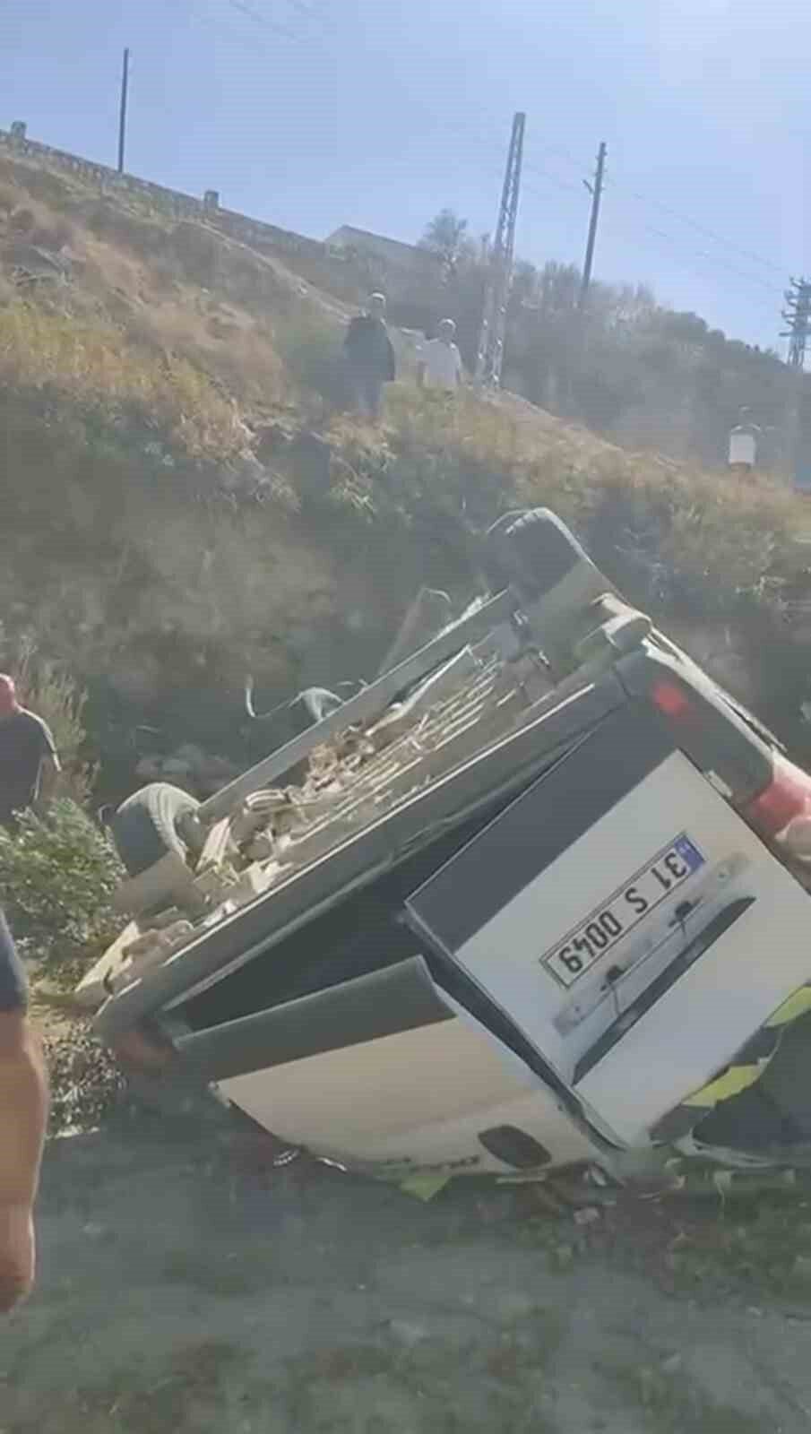 Hatay’da uçurumdan yuvarlanan servisin sürücüsü yaralandı.
