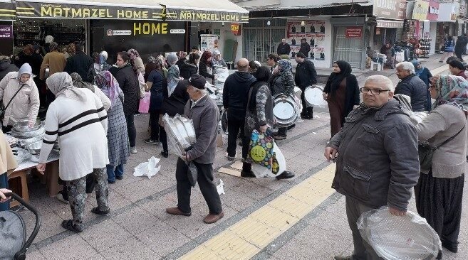 Yaklaşık bine yakın alüminyum leğen, tepsi ve tavanın yarım saat içinde tükendiğini belirten mağaza sahibi Kadir Orhan, “Çiğ köfte leğeninin piyasa değeri 155, 165, 180 lira arasında değişirken, biz 100 liraya satışa sunduk. Bundan dolayı da yoğun ilgi gördük. Ürünlerimi açmakta güçlük yaşadım, zorlukla müşterilerin arasından sıyrılmaya çalıştım” dedi.
