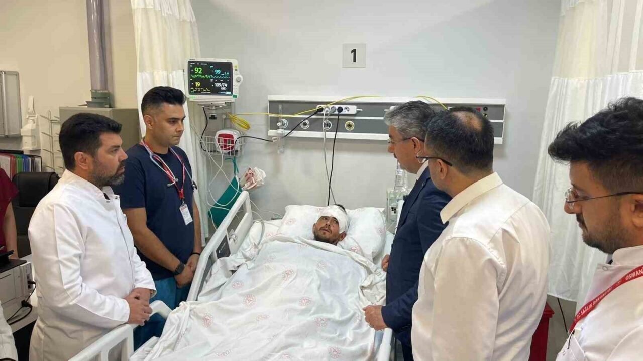 Osmaniye Devlet Hastanesi’nde yaralı ve yaralı yakınlarını ziyaret edip doktorlardan bilgi alan Vali Erdinç Yılmaz yaptığı açıklamada, “Tabi bu sıralar maalesef havalar çok sıcak, zaman zaman rüzgar da var, nem de düştüğü zaman yangın riski çok artıyor. Dünden beri dün Sumbas ilçemizin Akdam köyümüzde ciddi bir yangın yaşadık. Yaklaşık 3-4 saat müthiş, olağanüstü bir mücadele ile kontrol altına alındı. Gece boyunca da birkaç noktada yangınlar oldu ama sabah yine Hasanbeyli’de çıkan yangına orman teşkilatımızın yangını söndürmek amacıyla giderken bir sulama arazözü, orman söndürme arazözü maalesef yolda dolgu olan bir yerde çökme olması dolayısıyla uçuruma yuvarlanıyor. Araçta 6 personelimiz bulunuyor. Maalesef bir personelimiz şehit oldu. Allah mekanını cennet etsin. 2 personelimiz ayakta tedavi gördüler, 2 personelimizin de durumu iyi. Bu 6 personelimizden bir personelimizin durumu ağır. Osmaniye Devlet Hastanemizde bütün doktorlarımız elinden gelen gayreti gösteriyorlar. Allah’ın izniyle en iyi şekilde tedavi edip buradan taburcu edeceklerine inanmak istiyorum, inanıyorum. İnşallah öyle olacak. Allah bir daha yaşatmasın. Gerçekten yangınla mücadele, ciddi bir mücadele veriyorlar. Gerçekten kahramanca bir mücadele veriyor arkadaşlarımız bu yeşil vatanımızı koruma mücadelesinde. Türkiye’mizin başı sağ olsun diyorum. Orman teşkilatımızın başı sağ olsun. Şehidimize Allah’tan rahmet diliyorum. Mekanı cennet olsun” ifadelerini kullandı.