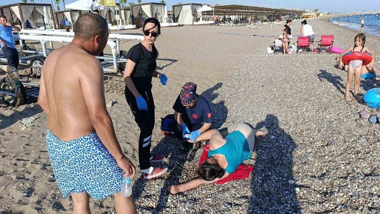 Denize giren yabancı uyruklu B.H. isimli kadın, bir anda denizde batıp çıkmaya başladı. Denize giren vatandaşlar tarafından sudan baygın vaziyette sahile çıkarılan yabancı uyruklu kadın, kısa süre sonra ayılarak kendine geldi.