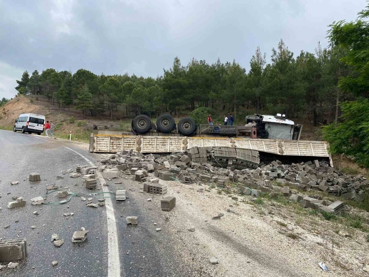 Burdur-Isparta Dostluk Yolu’nda yağış nedeniyle kayganlaşan yolda kontrolden çıkan tuğla yüklü tır şarampole devrildi. Kazada şans eseri yaralanan olmadı.