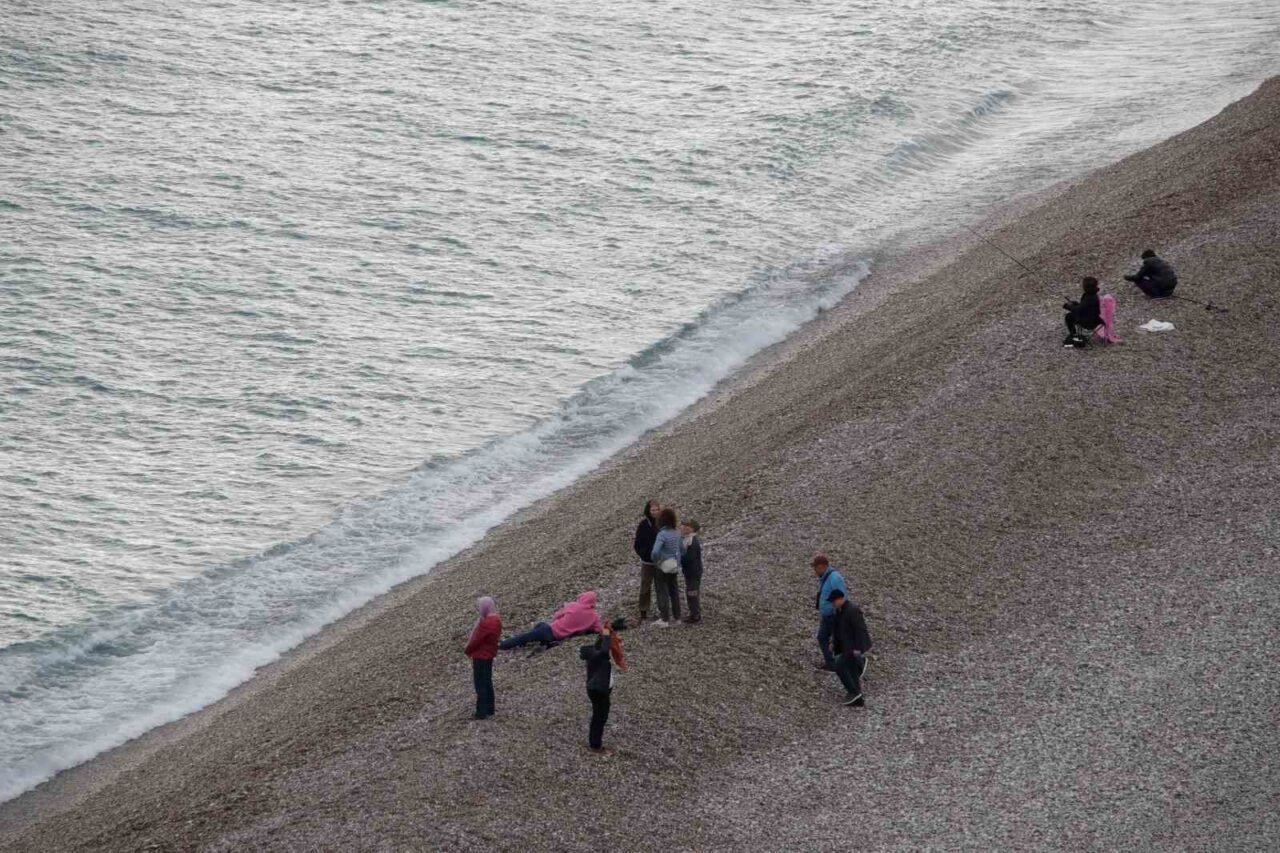Hafta sonu için Meteoroloji Bölge Müdürlüğü tarafından gök gürültülü şiddetli yağış ve yüksek kesimlerde kar yağışı uyarısı yapılan Antalya’da yağmur sabah saatlerinden itibaren etkisini göstermeye başladı. Yer yer kuvvetli yağışın ardından öğlen saatlerinde kısa süreli güneşli hava açarken, bu durumu fırsat bilen Antalyalılar da kendilerini Konyaaltı Sahiline attı. Bazı vatandaşlar yanlarında getirdikleri kamp sandalyeleri ile birlikte aileleriyle birlikte sahilde oturmayı tercih ederken, kimileri yürüyüş yapmayı, kimileri ise balık tutmayı tercih etti. Meteroloji Bölge Müdürlüğü yetkilileri yerel yağışların Antalya merkez ilçelerinde sabah saatlerine kadar süreceği uyarısında bulundu.