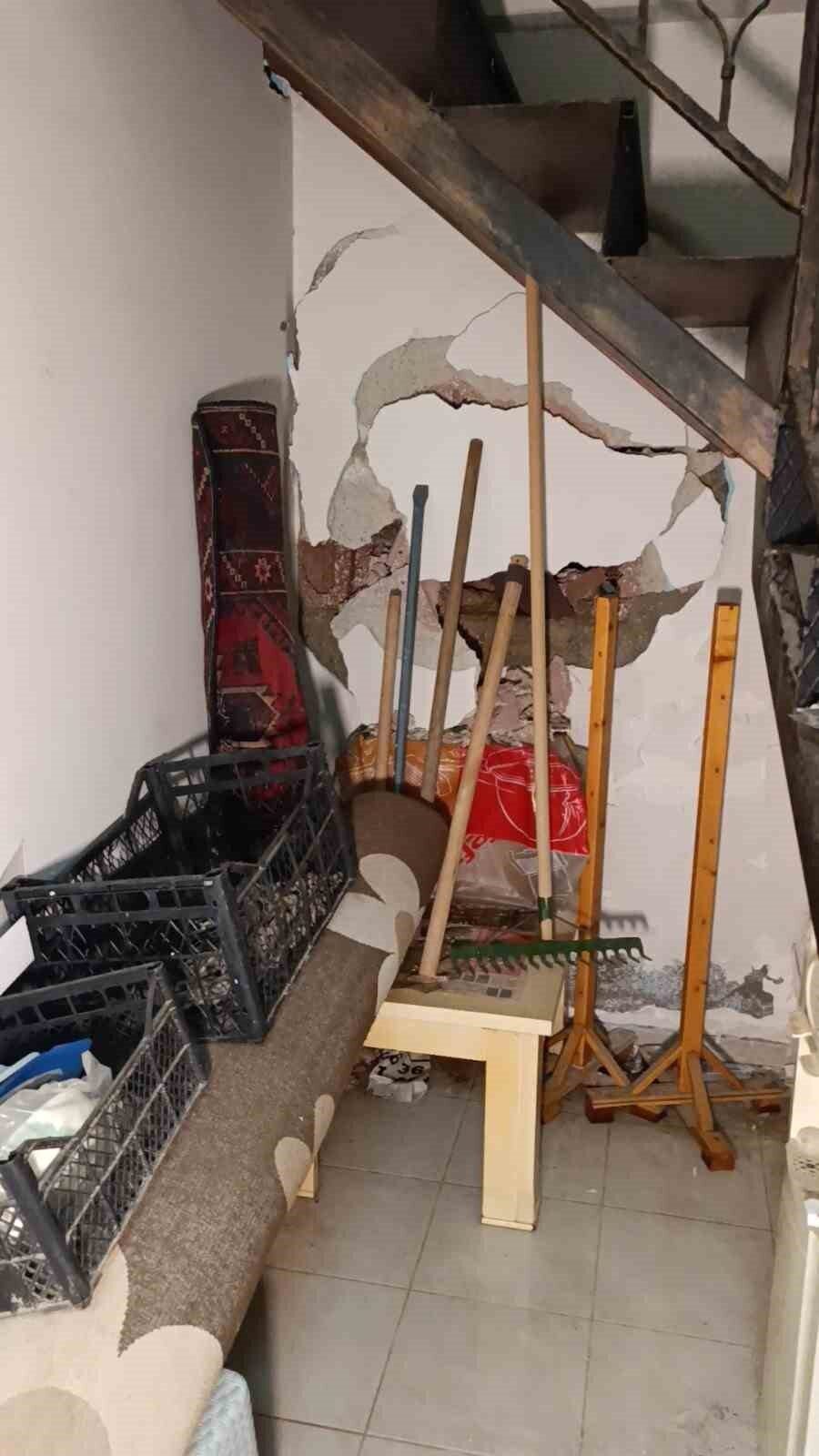 Yağmur sebebiyle kayan toprak binaya zarar verdi
