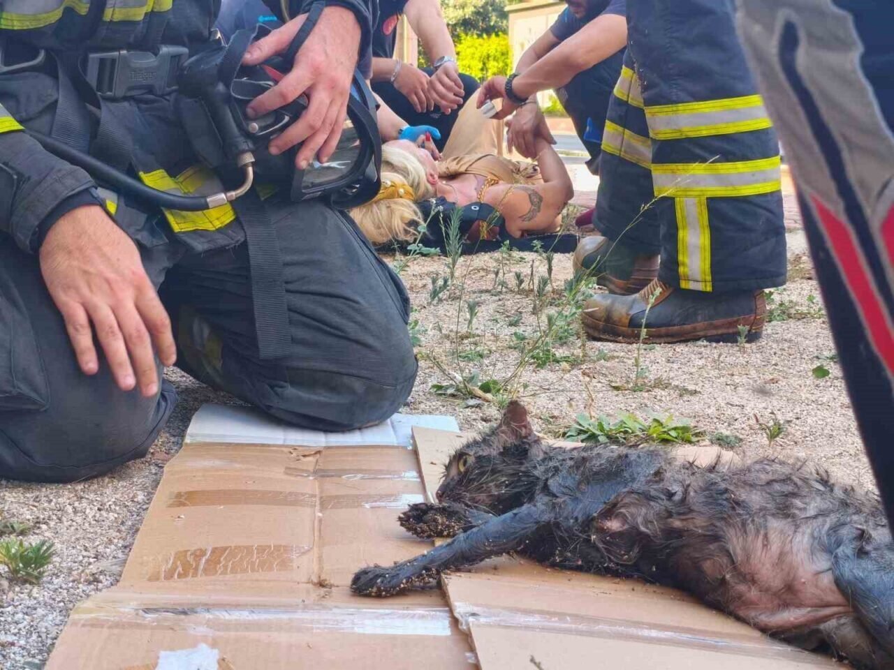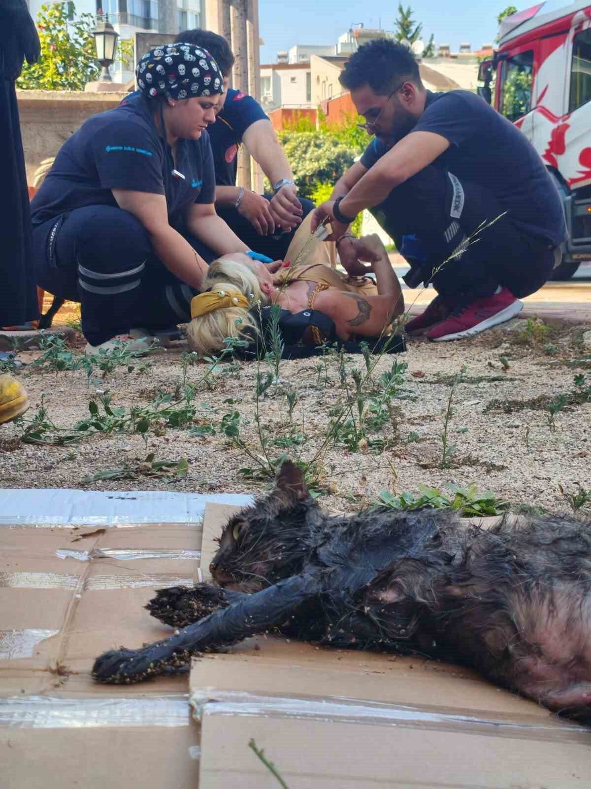 Bu sırada yanan evde bulunan ve dumandan etkilenen bir kedi itfaiye ekiplerince alevlerin arasından çıkartıldı. Duman nedeniyle nefes almakta zorlanan kediye itfaiye eri tarafından oksijen maskesiyle müdahale edildi. Bitkin olduğu ve hareket etmekte zorlanan kedi, olay yerine çağrılan veteriner tarafından teslim alınarak tedavi altına alındı. Polis ve itfaiye ekipleri yangının çıkış nedeniyle ilgili inceleme başlattı.
