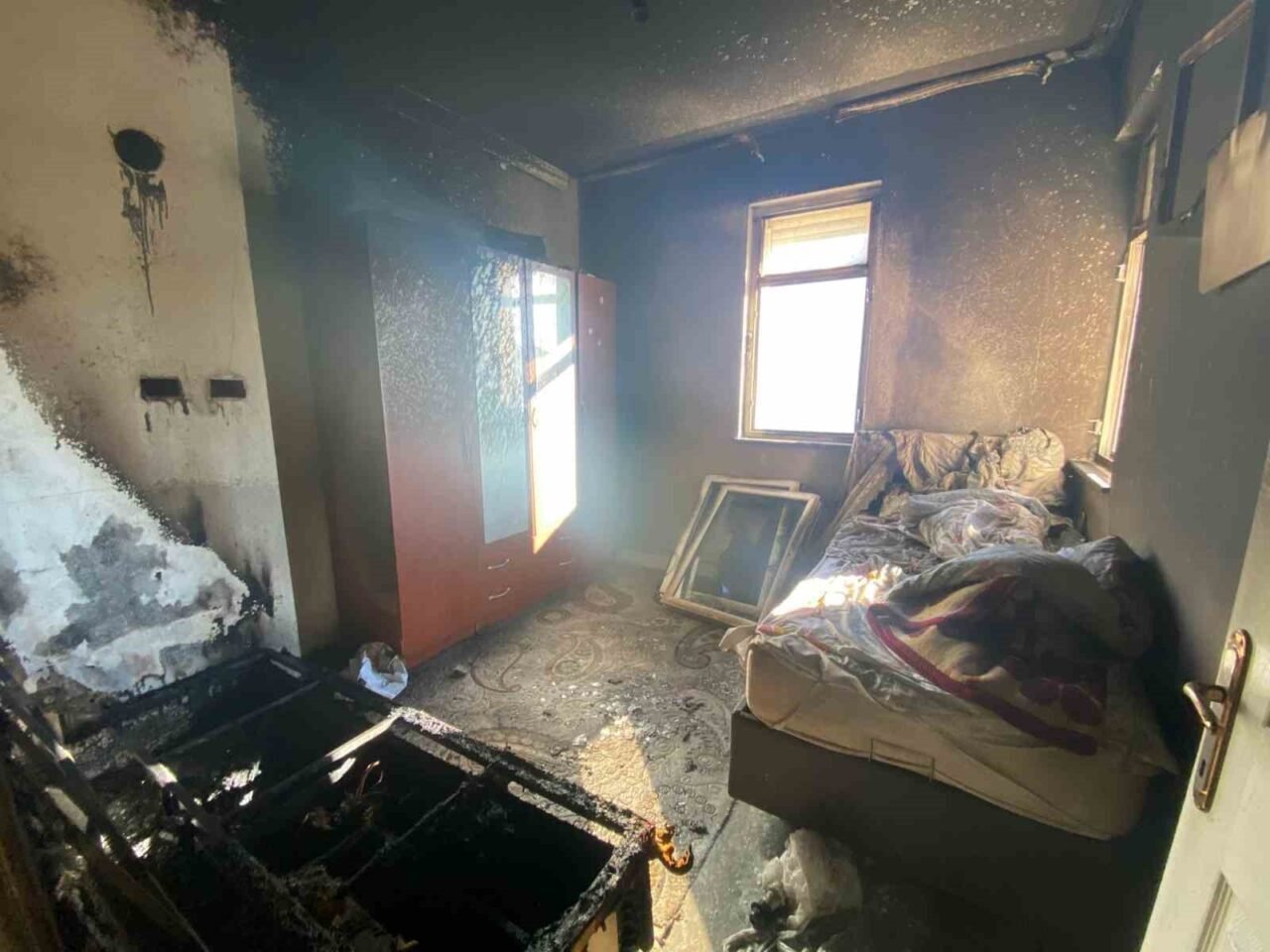 Yangında evin bir odasında bulunan eşyalar tamamen yanarak maddi zarar meydana geldi.
