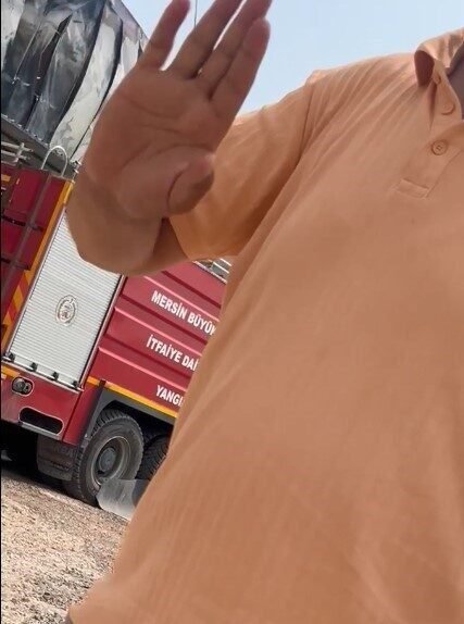 Mersin’de bir depoda çıkan ve saatlerce süren mücadele sonrası söndürülen yangın bölgesinde çekim yapan gazetecilere,