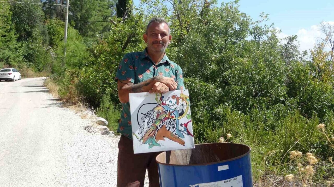 Antalya’nın Kaş ilçesinde yaşayan ressam, 11 yıldır yaptığı tablolarını çöpe atıyor. Bugüne kadar dünyanın farklı ülkelerinde 2 bin 175 eserini çöp kutularının kenarına bırakan ressam, “Sanat toplumda saygı ve sevgiyi güçlendirmeli, resim yaparken ticari amaç gütmüyorum bunun için ömrüm boyunca resimlerimi çöpe atmaya devam edeceğim” dedi.