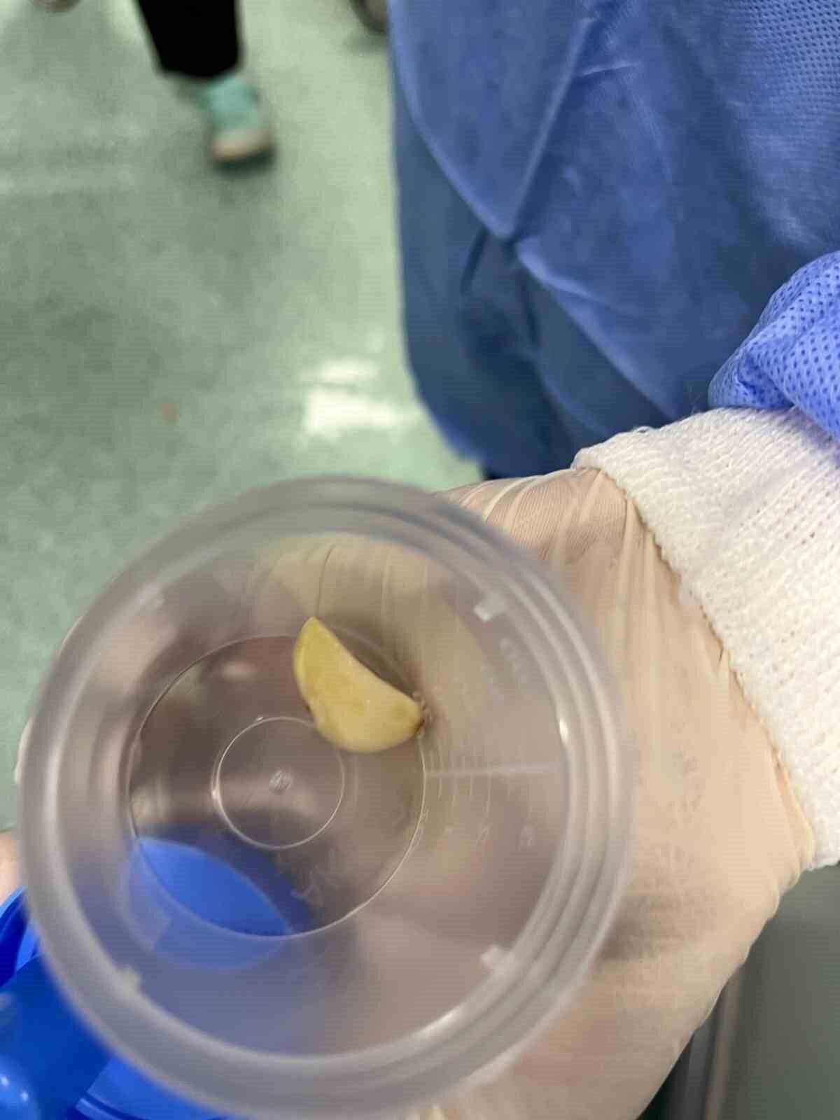 Osmaniye’de yaşlı adamın yemek yerken akciğerine kaçan 1 buçuk santimetrelik sarımsak operasyonla çıkarıldı.