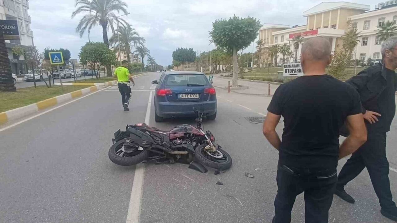 Antalya’nın Manavgat ilçesinde, yaya geçidinde duran otomobile çarpan motosikletin sürücüsü yaralandı.