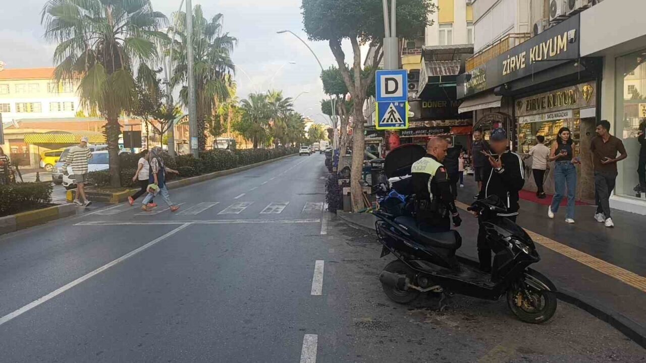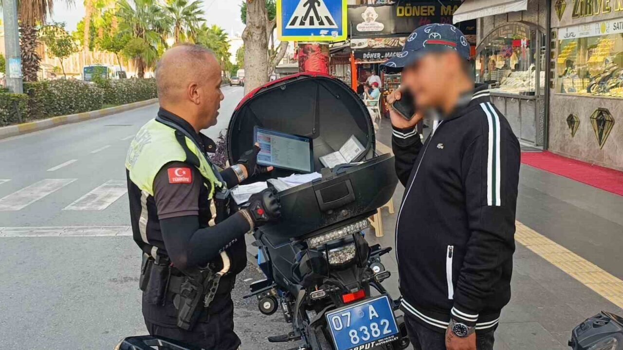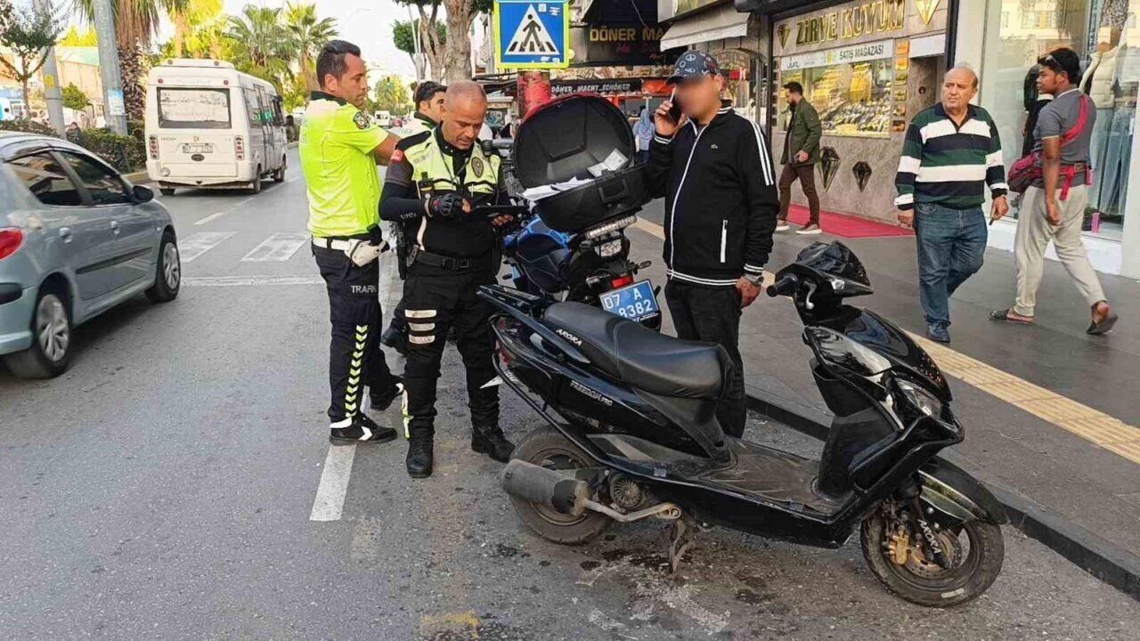 Antalya’nın Manavgat ilçesinde motosiklet sürücüsü yayalara yol vermek için duran otomobile arkadan çarptı. Kazada sürücü belgesi bulunmayan ve katlanır plaka kullanan sürücü ile motosiklet sahibine toplan 41 bin 163 TL para cezası uygulandı.
