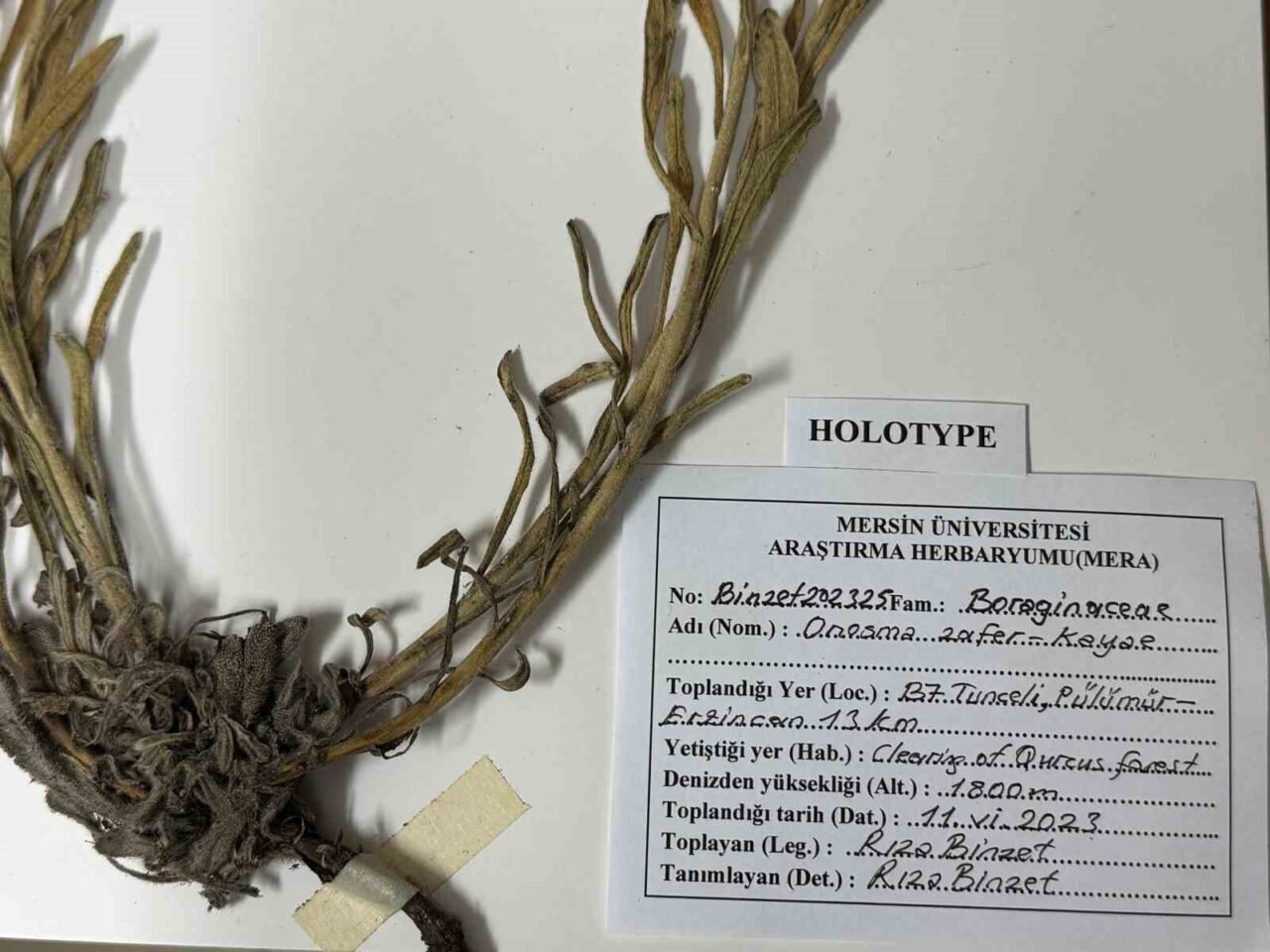 Topladıkları popülasyondaki en iyi örneği seçerek onu ’şahit örneği’ yaptıklarını vurgulayan Binzet, “Yani ’tip örnek’ yapıyoruz. Bu bizim holotipimiz oluyor. Ben bitkiyi tanımlarken, bu örnekten faydalanarak çıkarmış oluyorum. Onun için bu örnek değerli ve bunu Mersin Üniversitesi Araştırma Herbaryumu’nda saklayacağız” diyerek sözlerini tamamladı.
