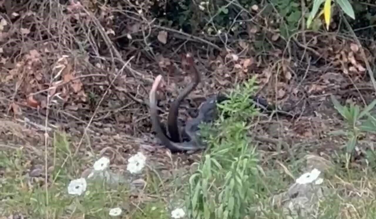 Adana’nın Kozan ilçesinde ısınan havayla birlikte ortaya çıkan yılanların ’Çiftleşme’ dansı görüntülendi.