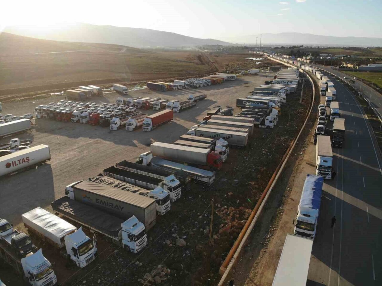 SINIR KAPILARINDA SAYILARI YAKLAŞIK 2 BİNİ BULAN ARAÇ KAPASİTESİNE ULAŞILDI. SURİYE’DE YÖNETİMİN DEĞİŞMESİNİN ARDINDAN ARTAN VERGİLERDEN DOLAYI TÜCCARLAR ARASI SORUNLAR YAŞANSA DA SINIR KAPILARINDA ARAÇ KUYRUKLARI KİLOMETRELERCE UZAMIŞ DURUMDA. SINIR KAPILARINDA OLUŞAN DEVASA TIR KUYRUKLARI DRON İLE HAVADAN GÖRÜNTÜLENDİ.