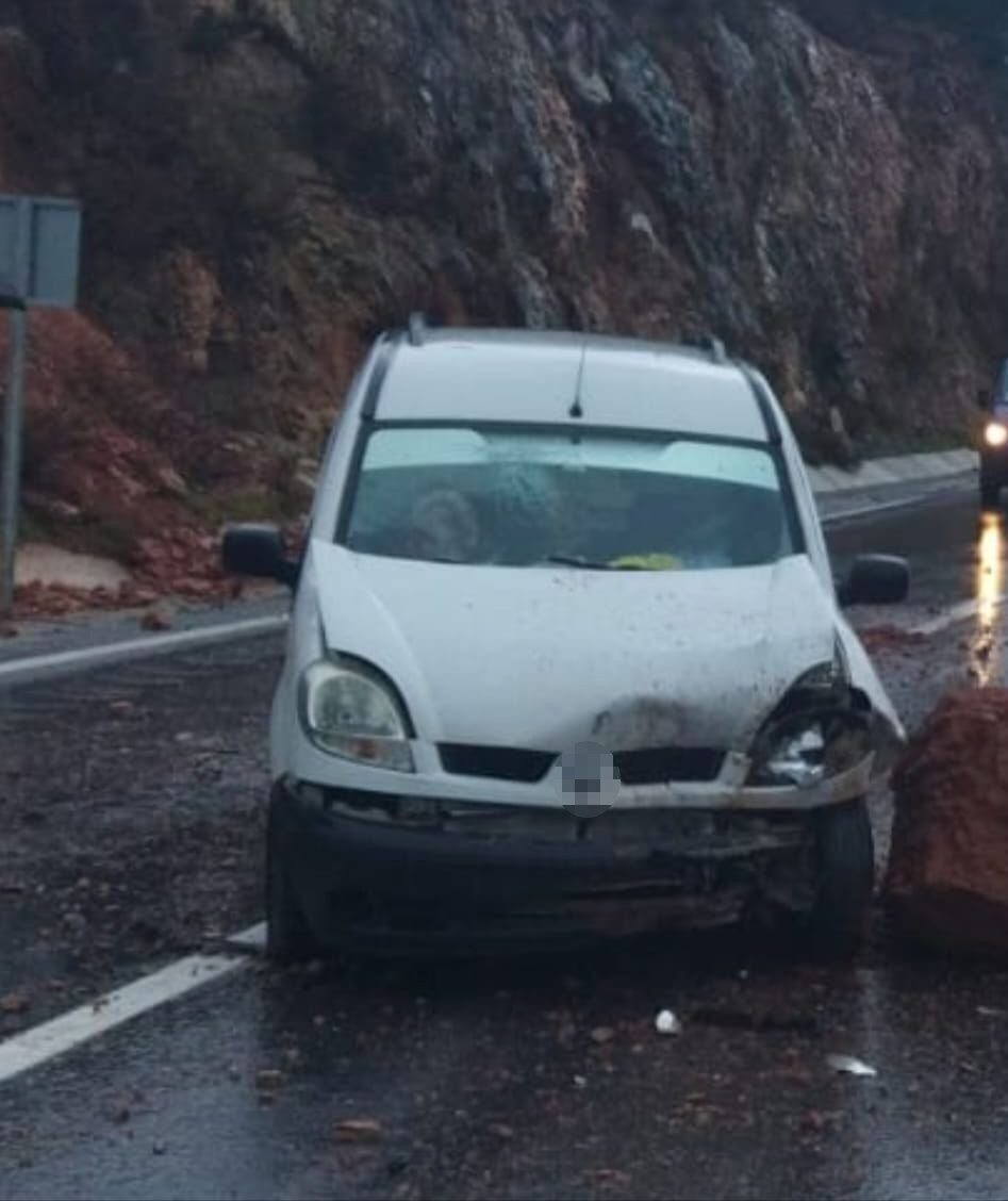 Antalya’nın Gazipaşa ilçesinde yola düşen kaya parçasına çarpan araçta hasar oluşurken 72 yaşındaki kadın hafif şekilde yaralandı.