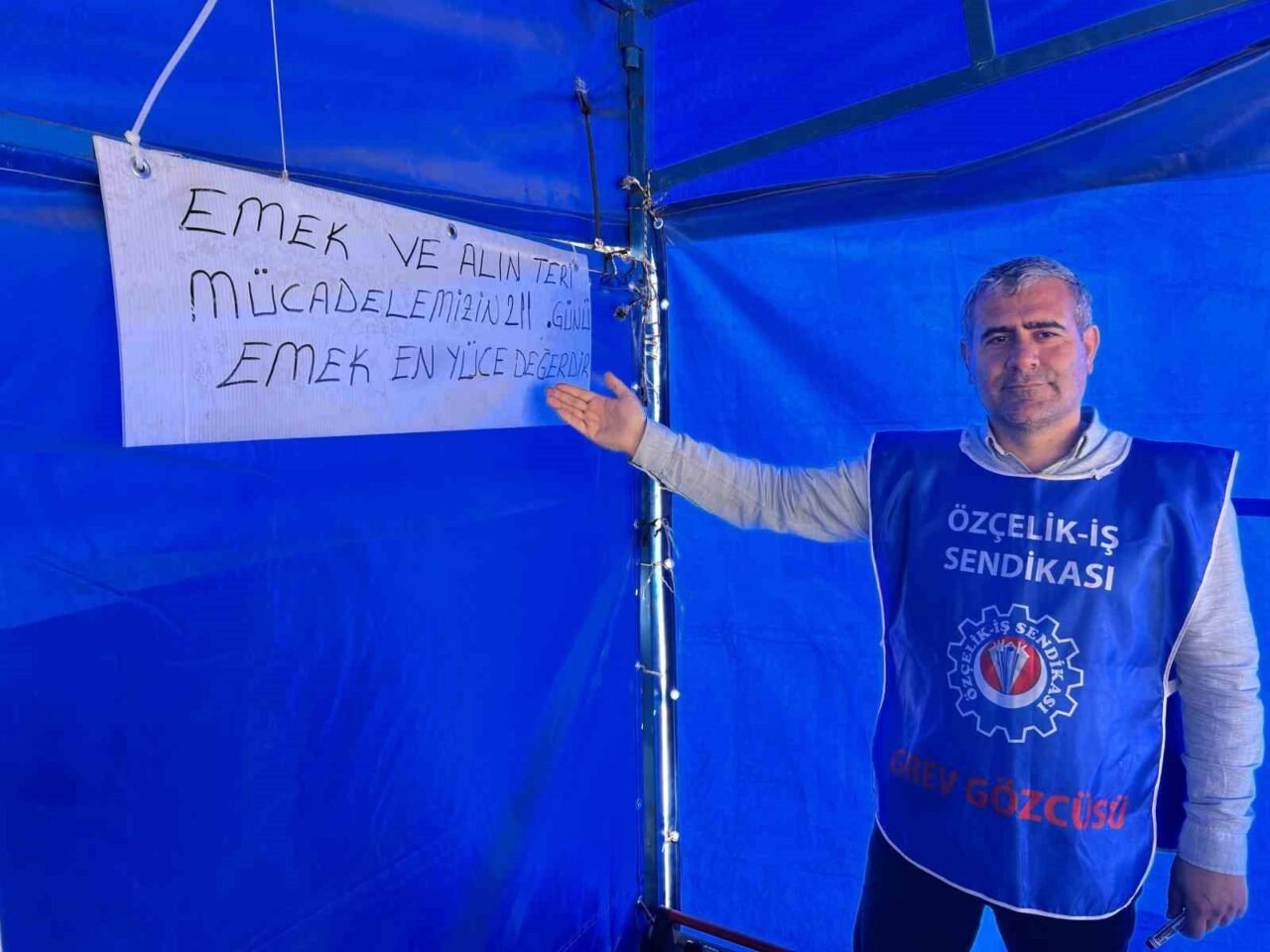 ÖZÇELİK-İŞ sendikası İskenderun Şube Başkanı Mehmet Güngör, fabrikanın üretime ara verdiğini ve kendilerinin 148 kişiyle greve devam ettiklerini belirterek, “Firma 2024 yılının başlarına geldiğimizde toplu sözleşme masasına bir rakam getirdi. Firmanın gönderdiği rakam 2024 yılı için ortalama en düşük maaşın 22 bin TL olmasıydı. İşveren bu konuda bize önerdiği rakama çıkmayacak pozisyonda kalınca 20 Haziran’a kadar görüşmelerimiz devam etti. 20 Haziran itibarıyla artık başka çaremiz yoktu, ya sözleşmeyi imzalayacaktık ya da greve çıkacaktık. Arkadaşlarımızla oturduk, ortak bir karar hakkımızı alacağız diye mücadeleye başladık. İşveren tabii ki greve çıktıktan sonra yüzde 20 daha verdi, bütün maaşın 2024 yılı için sadece ve sadece 22 bin TL teklifini getirdi. Biz bunu kabul edemeyeceğimizi söyledik, tam 211 gündür yeni bir teklif de getirmedi. Temmuzun sıcağında da aralığın ve ocağın soğuğunda da mücadelemiz devam ediyor. Bizim amacımız da şov yapmak değil, bizim amacımız üretime katkı sunmak ama üretime katkı sunarken de emeğimizin ve alın terimizin karşılığını almak için mücadelemiz devam ediyor. Greve başladığımızda 200 kişilik ortalama bunun zaten 35 kişisi yasal olarak içeride üretime katkı sağlayıp fabrikayı korumak ve bakım yapmakla alakalı. Yasal olarak içeride arkadaşlarımız var, grevde toplam 170 kişi ama 22 kişi işten ayrıldı. Şu an da 148 kişiyle yolumuza devam ediyoruz, fabrika şu an çalışmıyor” ifadelerini kullandı.
