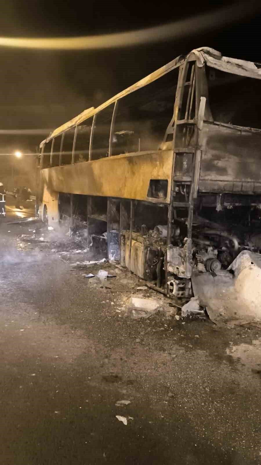 Adana’da seyir halindeki yolcu otobüsü alevlere teslim oldu. Şans eseri kimsenin yaralanmadığı olayda otobüs tamamen yanarak metal yığınına döndü.