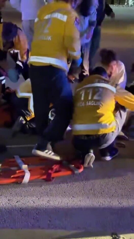 Yolun karşısına geçmek isteyen yayaya önce motosiklet, ardından araç çarptı