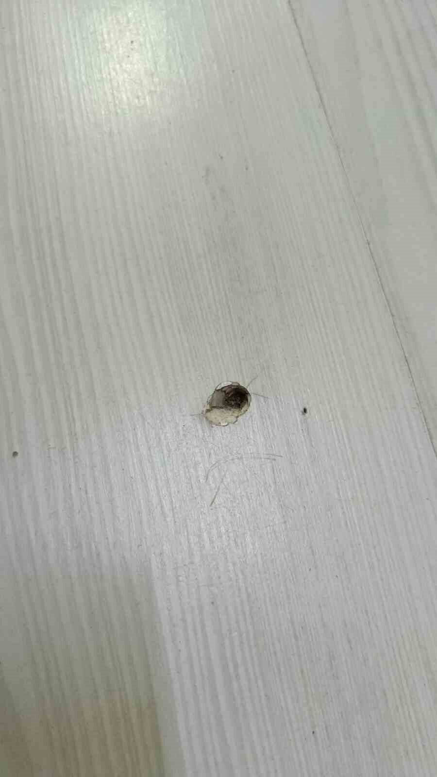 Kahramanmaraş’ın Elbistan ilçesinde bir iş yerine isabet eden yorgun mermi çatıyı delerek parkeye saplandı.