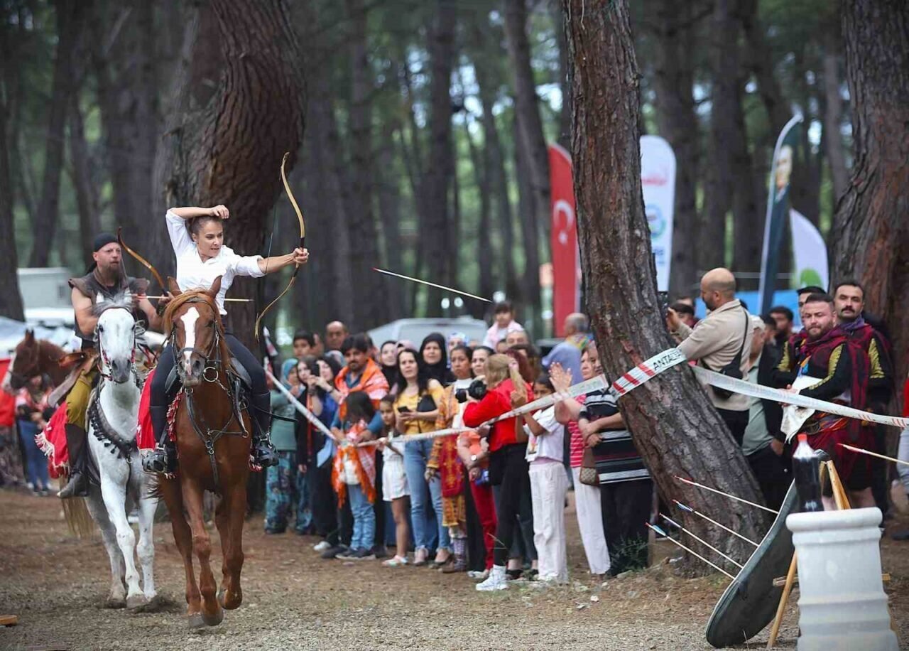 4. Uluslararası Antalya Yörük Türkmen Festivali’nin ikinci günü de dolu dolu etkinliklerle geçti. Festival alanını ziyaret eden Antalya Büyükşehir Belediye Başkanı Muhittin Böcek, alanı gezerek katılımcılar ve ziyaretçilerle sohbet etti. Gün boyu renkli etkinliklerin yer aldığı festivalde ata sporlarından, el sanatlarına, yöresel yemeklerden, halk danslarına ve konserlere kadar yörük kültürü tüm yönleriyle yaşatıldı. At üstündeki okçuluk, kılıç ve akrobasi gösterileri de ilgiyle izlendi. At üstünde gösteri yapan sporcular nefes kesti. İzleyenler alkışlarıyla akrobasi gösterisi yapan sporculara destek verdi.